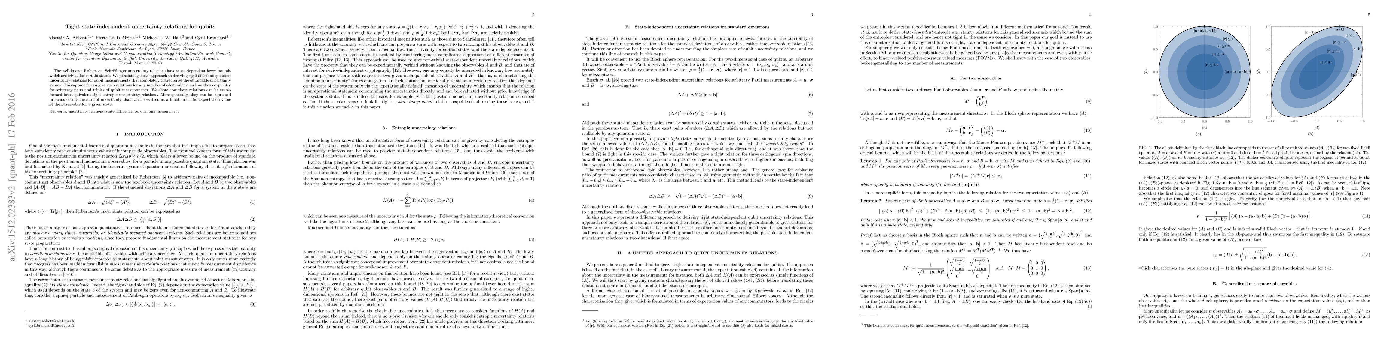 This paper develops tight state-independent uncertainty relations for qubit measurements, providing a general method that characterizes obtainable uncertainty for any number of observables. The derived relations are shown to be equivalent to entropic uncertainty relations and applicable to any uncertainty measure based on observable expectations.