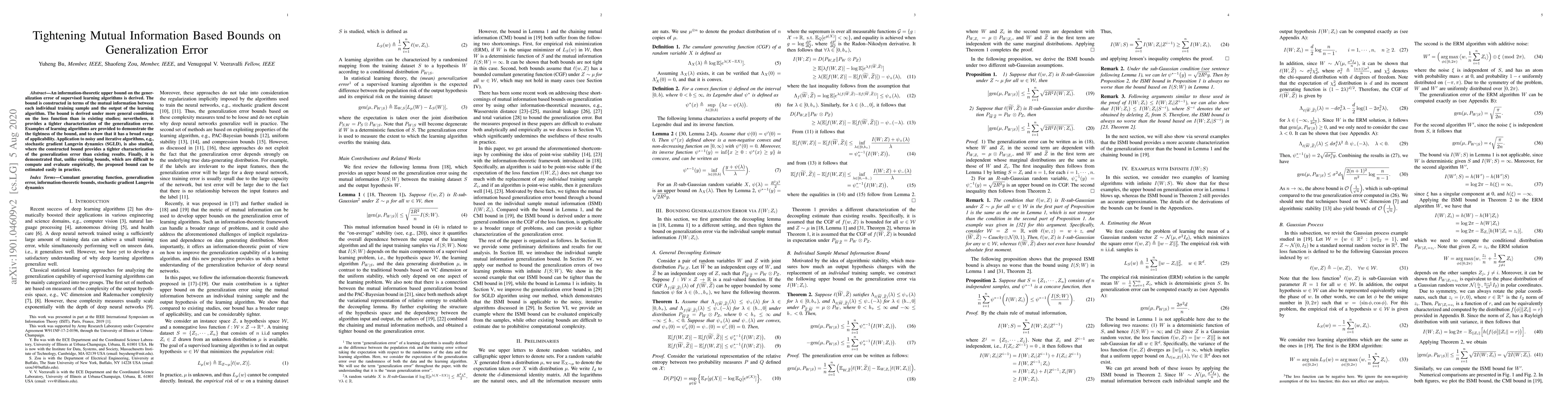 This paper derives a tighter information-theoretic upper bound on the generalization error of supervised learning algorithms, constructed using mutual information between training samples and algorithm outputs. Unlike existing bounds, this new bound is more general and easier to compute, providing a practical improvement for noisy and iterative algorithms like SGLD.