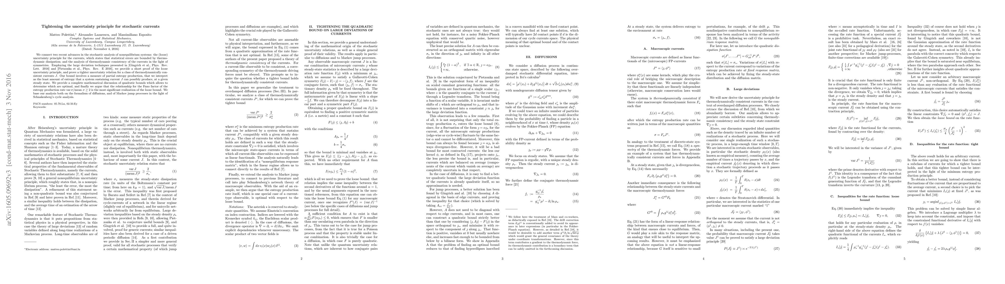 This paper tightens the uncertainty principle for stochastic currents by connecting recent advances in stochastic analysis and thermodynamic consistency. It provides a tighter bound involving partial entropy production and discusses optimal quadratic bounds, ultimately highlighting the significant Fano factor relationship for entropy production rate variability.
