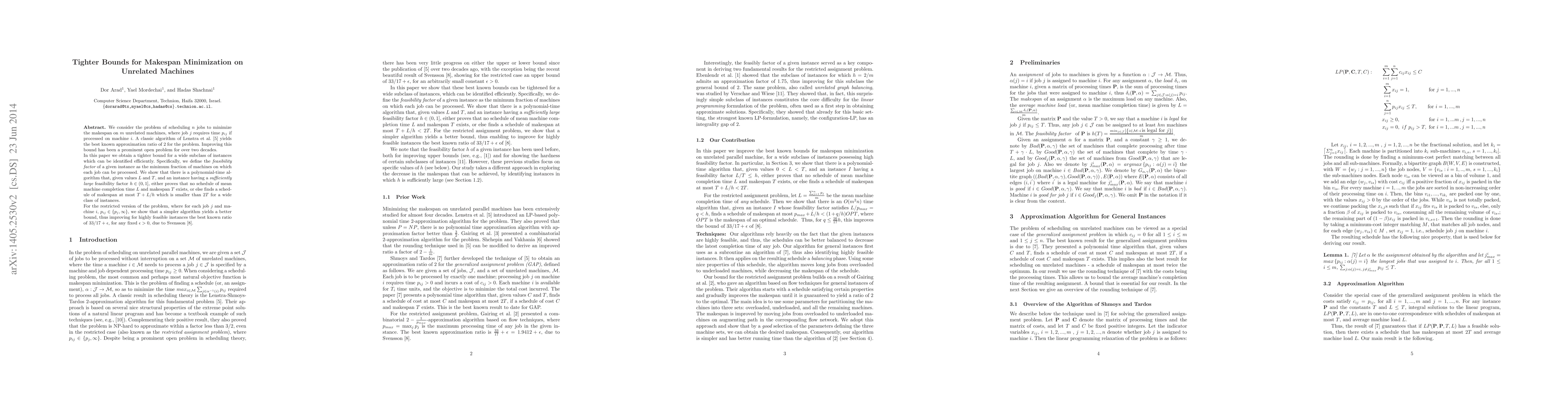 The paper presents a polynomial-time algorithm for scheduling jobs on unrelated machines to minimize makespan, improving upon the existing 2-approximation bound for a subclass of instances with a sufficiently large feasibility factor.