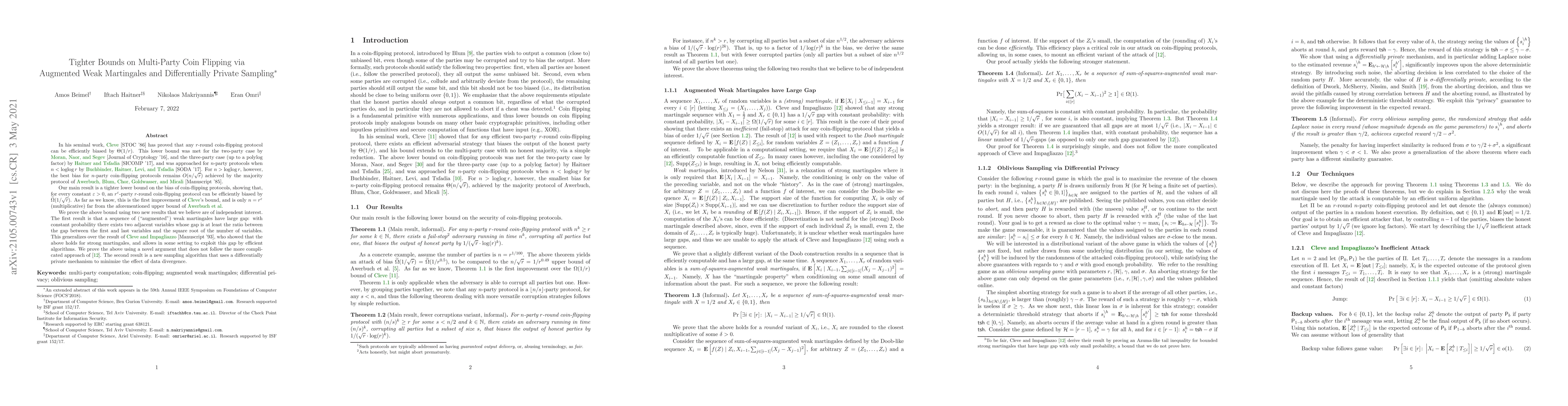 Eliad Tsfadia, Niv Buchbinder, Iftach Haitner et al.