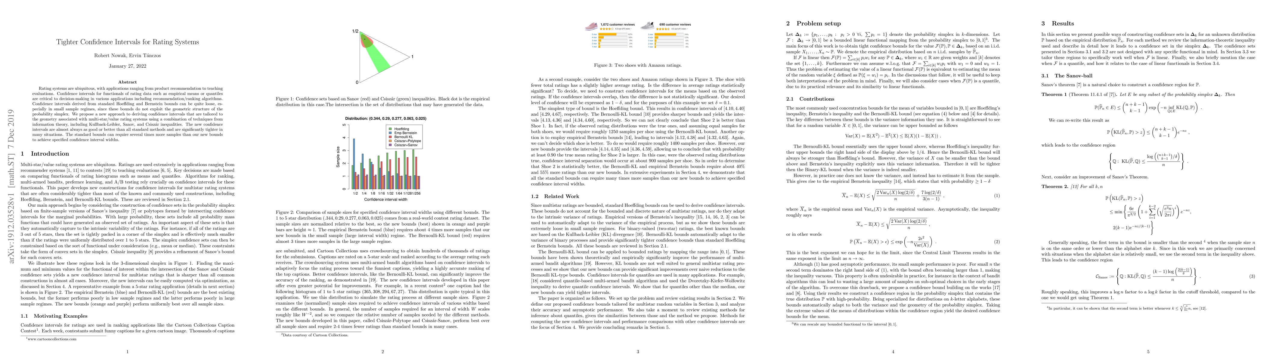 This paper proposes a novel method for deriving tighter confidence intervals for rating systems by leveraging geometric properties and information theory techniques, outperforming standard Hoeffding and Bernstein bounds, especially in small sample sizes. The new approach uses Kullback-Leibler, Sanov, and Csiszár inequalities to achieve more precise intervals.