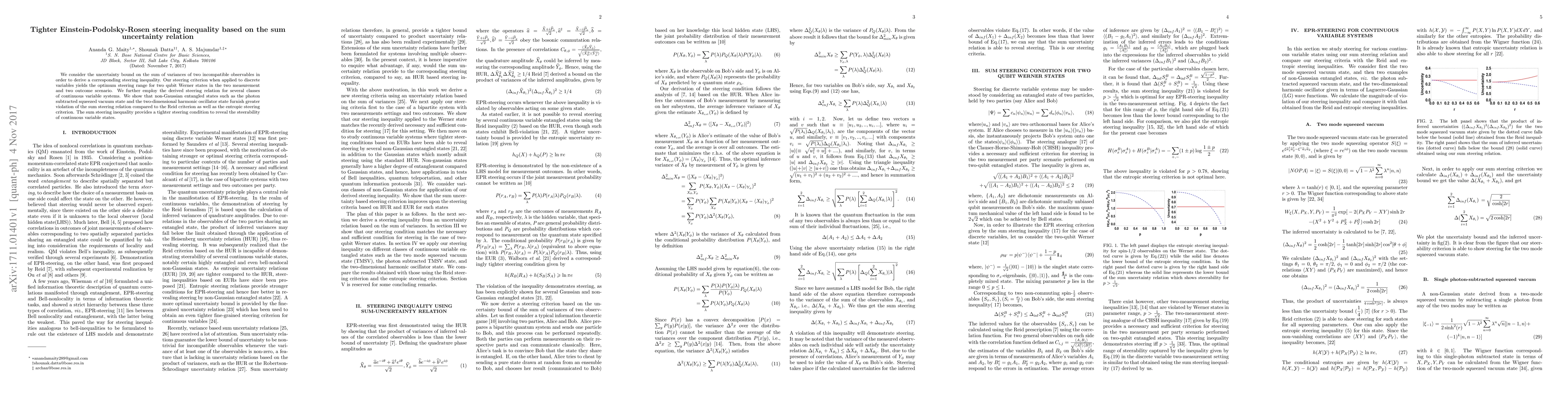 This paper derives a tighter Einstein-Podolsky-Rosen steering inequality based on the sum uncertainty relation, showing greater violation for non-Gaussian entangled states compared to existing criteria. The derived inequality provides a more precise measure of steerability in continuous variable systems.