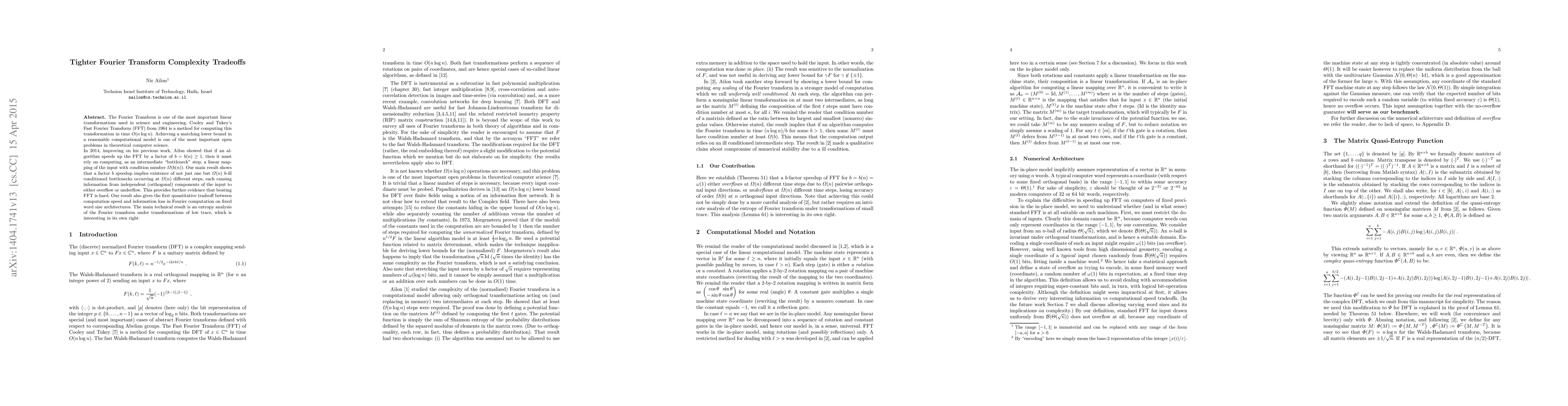 The Fourier Transform is one of the most important linear transformations used in science and engineering. Cooley and Tukey's Fast Fourier Transform (FFT) from 1964 is a method for computing this transformation in time $O(n\log n)$. Achieving a matching lower bound in a reasonable computational model is one of the most important open problems in theoretical computer science. In 2014, improving on his previous work, Ailon showed that if an algorithm speeds up the FFT by a factor of $b=b(n)\geq 1$, then it must rely on computing, as an intermediate "bottleneck" step, a linear mapping of the input with condition number $\Omega(b(n))$. Our main result shows that a factor $b$ speedup implies existence of not just one but $\Omega(n)$ $b$-ill conditioned bottlenecks occurring at $\Omega(n)$ different steps, each causing information from independent (orthogonal) components of the input to either overflow or underflow. This provides further evidence that beating FFT is hard. Our result also gives the first quantitative tradeoff between computation speed and information loss in Fourier computation on fixed word size architectures. The main technical result is an entropy analysis of the Fourier transform under transformations of low trace, which is interesting in its own right.