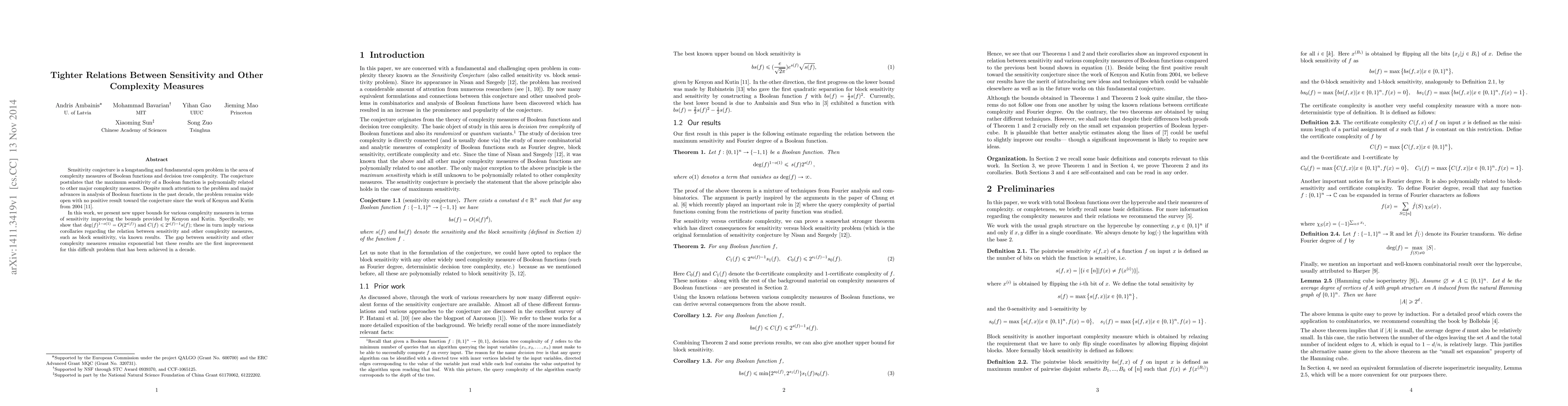 This paper presents new upper bounds for complexity measures in Boolean functions, improving previous results by Kenyon and Kutin. It shows that deg(f)^{1-o(1)} = O(2^{s(f)}) and C(f) < 2^{s(f)-1}, providing the first progress in a decade on the longstanding Sensitivity Conjecture.