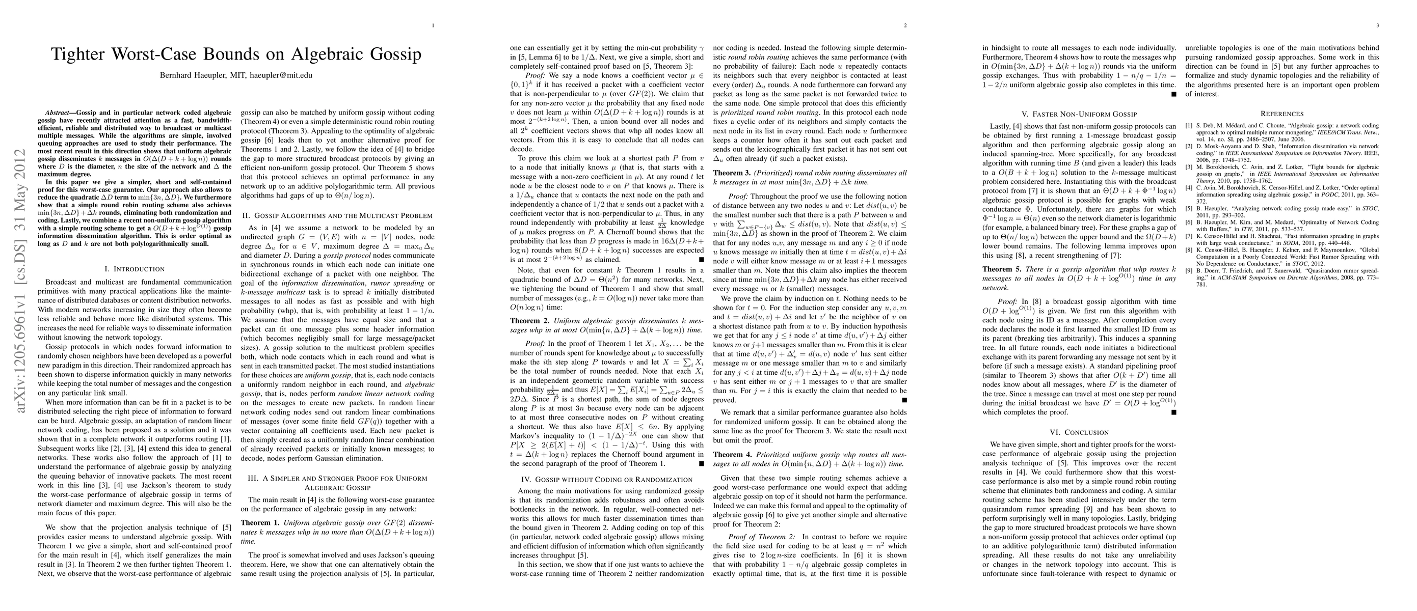 This paper presents a simplified proof for the worst-case bounds on algebraic gossip, reducing the quadratic term and demonstrating a round robin routing scheme that achieves optimal dissemination rounds. It also combines a non-uniform gossip algorithm with a routing scheme for an optimal O(D + k + log^{O(1)}) dissemination algorithm.