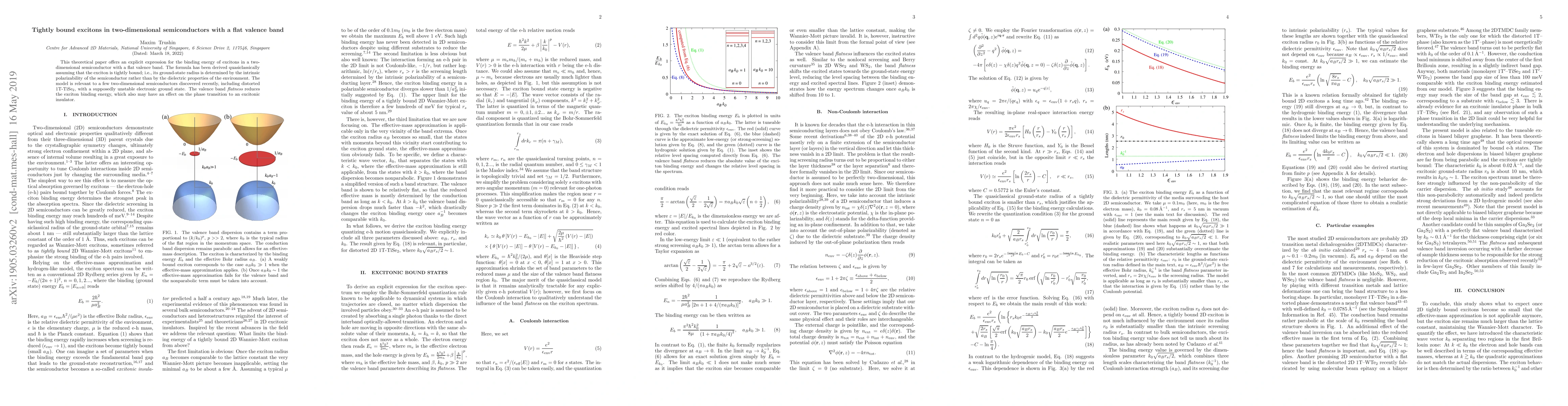 Researchers have developed a formula to calculate the binding energy of excitons in 2D semiconductors with flat valence bands, which could affect their electronic properties and phase transitions.