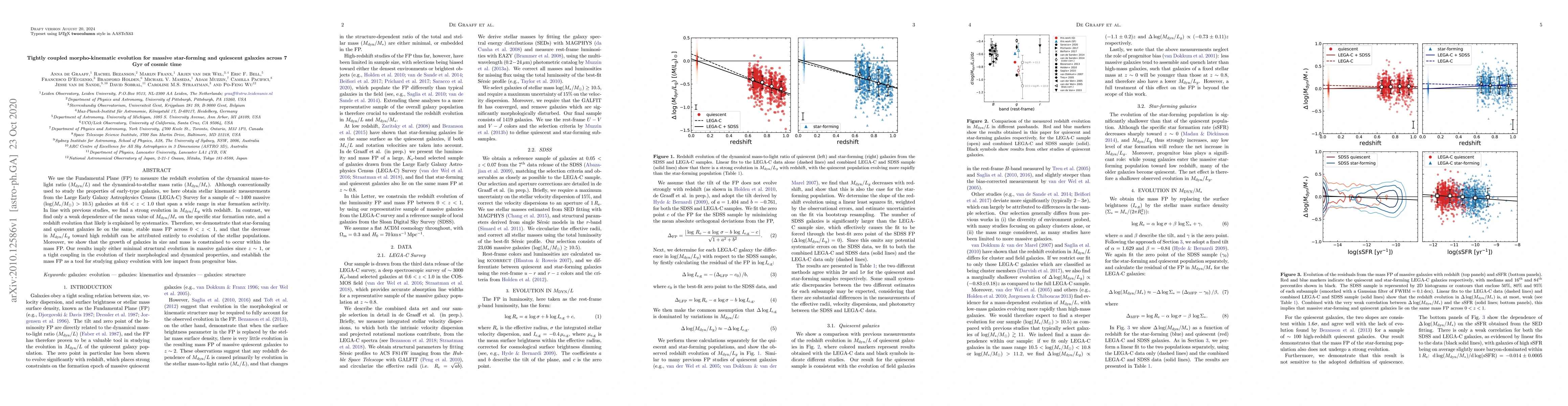 A new study finds that massive star-forming and quiescent galaxies follow the same mass plane across 1 billion years of cosmic time, suggesting minimal structural evolution or a tight coupling in their morphological and dynamical properties.
