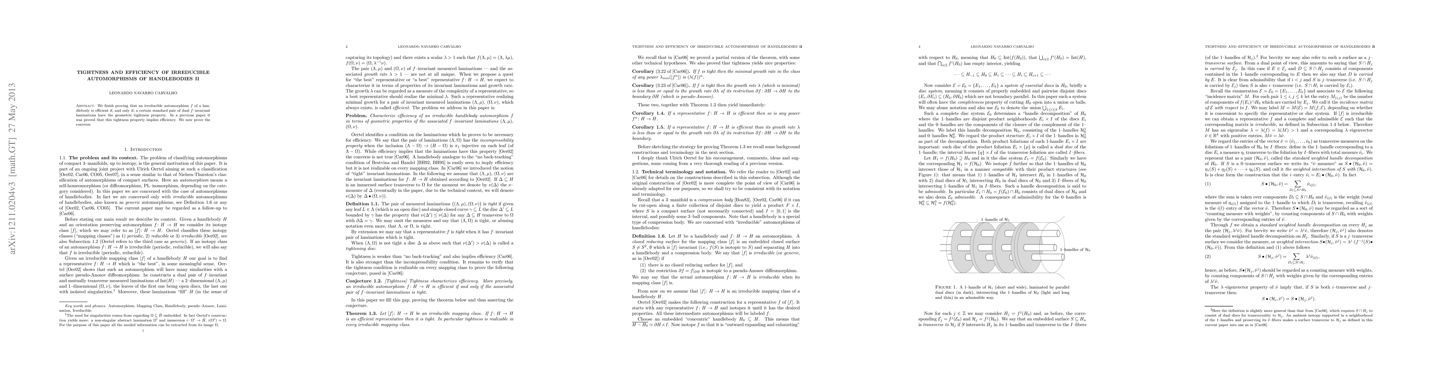 This paper completes the proof that an irreducible automorphism of a handlebody is efficient if and only if a specific pair of dual f-invariant laminations exhibit the geometric tightness property. The converse to the previously established implication is now proven.