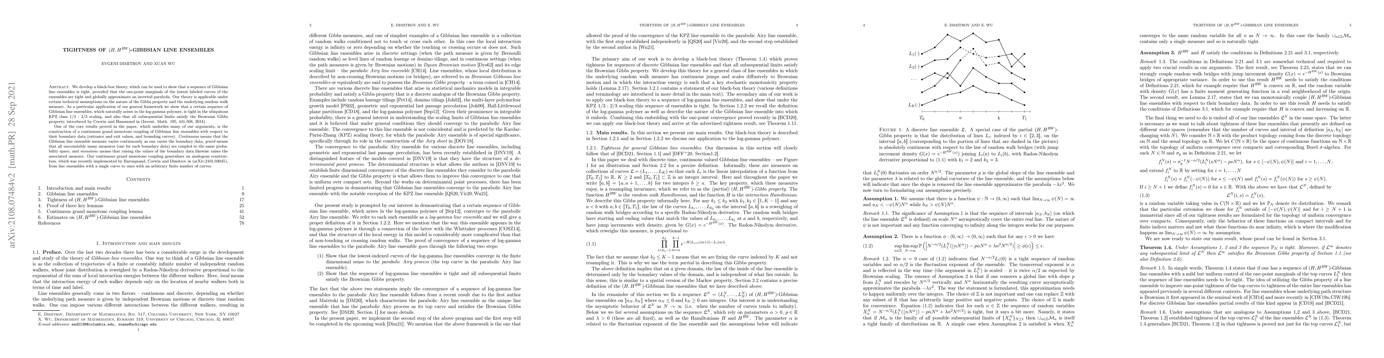 We develop a black-box theory, which can be used to show that a sequence of Gibbsian line ensembles is tight, provided that the one-point marginals of the lowest labeled curves of the ensembles are tight and globally approximate an inverted parabola. Our theory is applicable under certain technical assumptions on the nature of the Gibbs property and the underlying random walk measure. As a particular application of our general framework we show that a certain sequence of Gibbsian line ensembles, which naturally arises in the log-gamma polymer, is tight in the ubiquitous KPZ class $1/3: 2/3$ scaling, and also that all subsequential limits satisfy the Brownian Gibbs property, introduced by Corwin and Hammond in (Invent. Math. 195, 441-508, 2014). One of the core results proved in the paper, which underlies many of our arguments, is the construction of a continuous grand monotone coupling of Gibbsian line ensembles with respect to their boundary data (entrance and exit values, and bounding curves). Continuous means that the Gibbsian line ensemble measure varies continuously as one varies the boundary data, grand means that all uncountably many measures (one for each boundary data) are coupled to the same probability space, and monotone means that raising the values of the boundary data likewise raises the associated measure. Our continuous grand monotone coupling generalizes an analogous construction, which was recently implemented by Barraquand, Corwin and Dimitrov in (arXiv:2101.03045), from line ensembles with a single curve to ones with an arbitrary finite number of curves.
