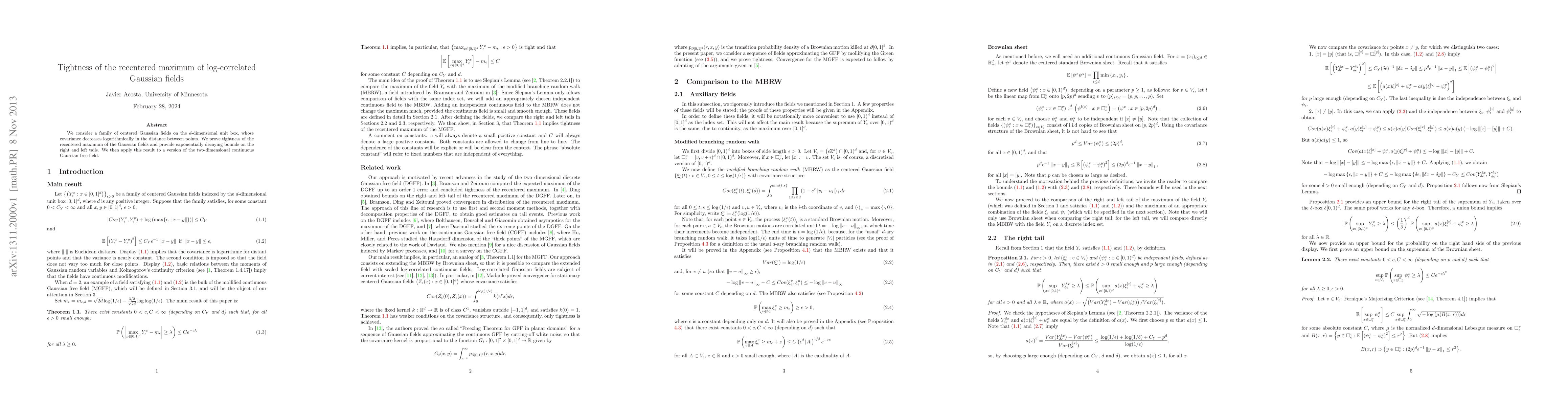 Summary: This research proves the tightness of the recentered maximum for log-correlated Gaussian fields on the d-dimensional unit box, providing exponentially decaying bounds on its tails. The findings are applied to a two-dimensional continuous Gaussian free field.