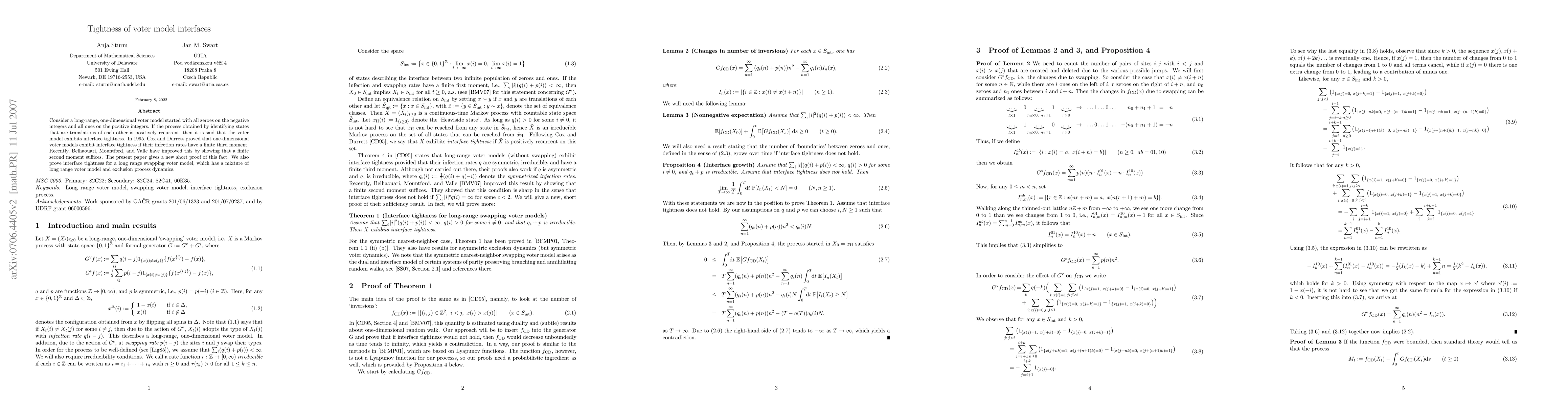 This paper presents a concise proof that one-dimensional voter models exhibit interface tightness when their infection rates have a finite second moment, improving upon previous results. Additionally, it extends this finding to a long-range swapping voter model combining long-range voter dynamics and exclusion process characteristics.