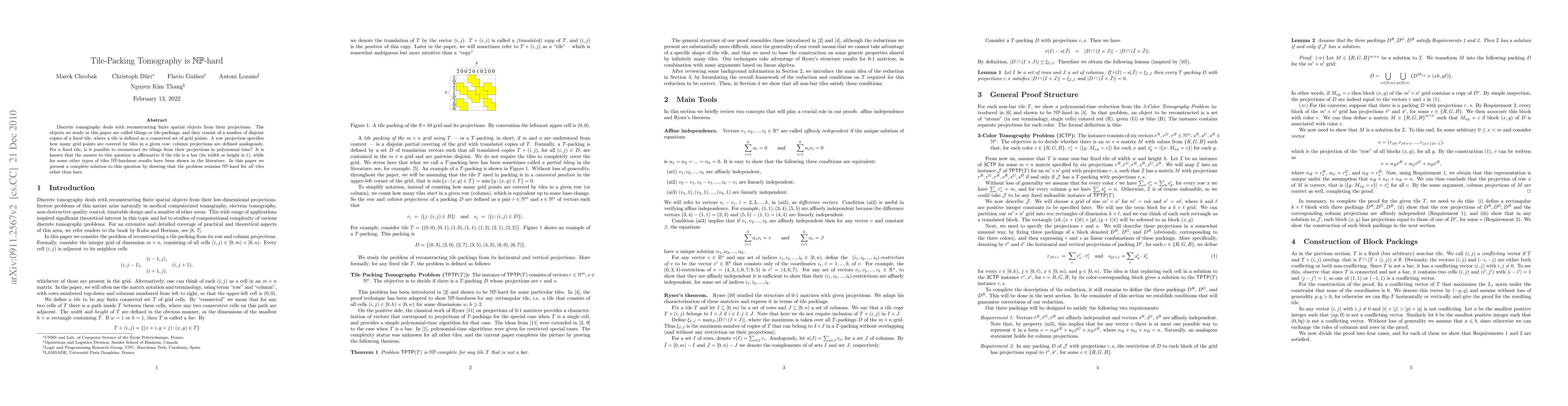 The problem of reconstructing a tile packing from its row and column projections is NP-hard for tiles that are not bars, regardless of their shape or size.