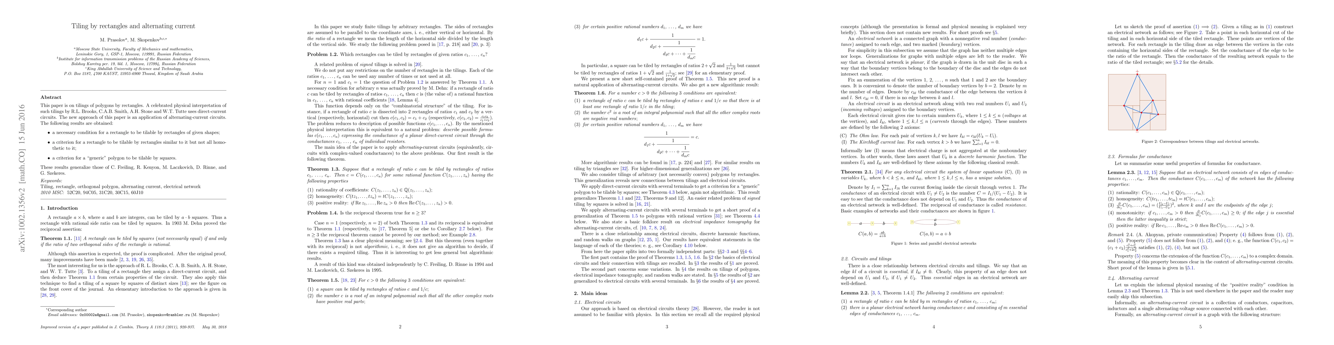 Researchers found necessary conditions for tilings of polygons using rectangles, including a criterion for generic polygons to be tiled by squares, generalizing previous work on direct-current circuits.