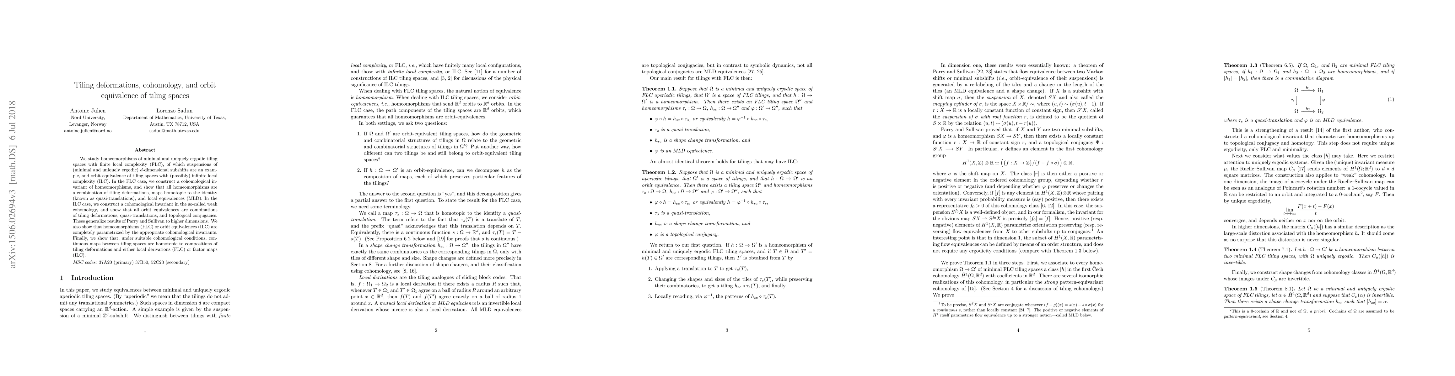 The paper introduces novel cohomological invariants for homeomorphisms and orbit equivalences of tiling spaces, extending classical results to higher dimensions and providing a comprehensive framework for their classification.
