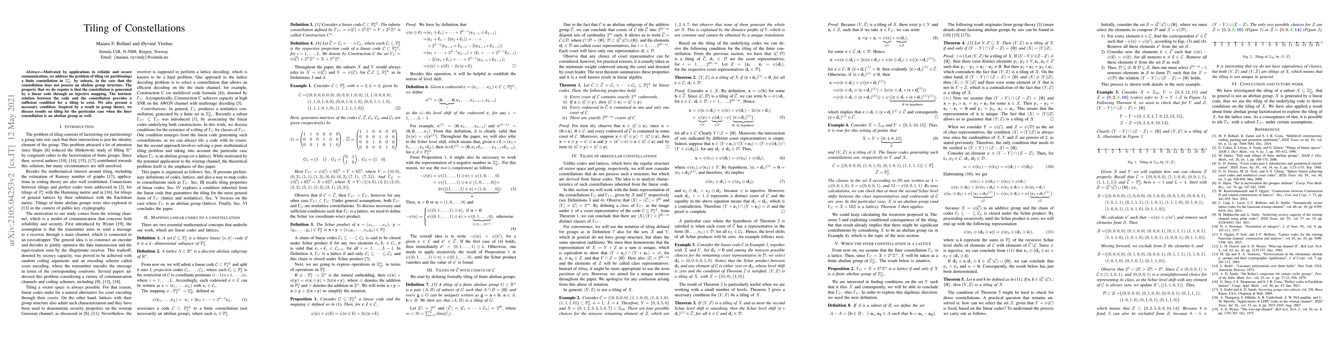Motivated by applications in reliable and secure communication, we address the problem of tiling (or partitioning) a finite constellation in $\mathbb{Z}_{2^L}^n$ by subsets, in the case that the constellation does not possess an abelian group structure. The property that we do require is that the constellation is generated by a linear code through an injective mapping. The intrinsic relation between the code and the constellation provides a sufficient condition for a tiling to exist. We also present a necessary condition. Inspired by a result in group theory, we discuss results on tiling for the particular case when the finer constellation is an abelian group as well.
