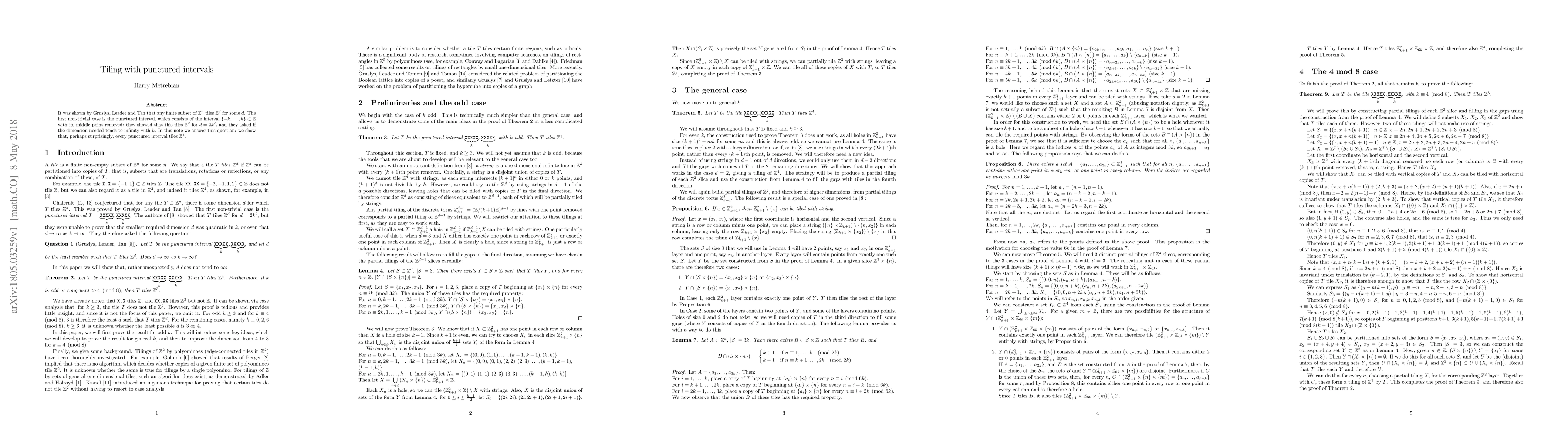 It was shown by Gruslys, Leader and Tan that any finite subset of $\mathbb{Z}^n$ tiles $\mathbb{Z}^d$ for some $d$. The first non-trivial case is the punctured interval, which consists of the interval $\{-k,\ldots,k\} \subset \mathbb{Z}$ with its middle point removed: they showed that this tiles $\mathbb{Z}^d$ for $d = 2k^2$, and they asked if the dimension needed tends to infinity with $k$. In this note we answer this question: we show that, perhaps surprisingly, every punctured interval tiles $\mathbb{Z}^4$.