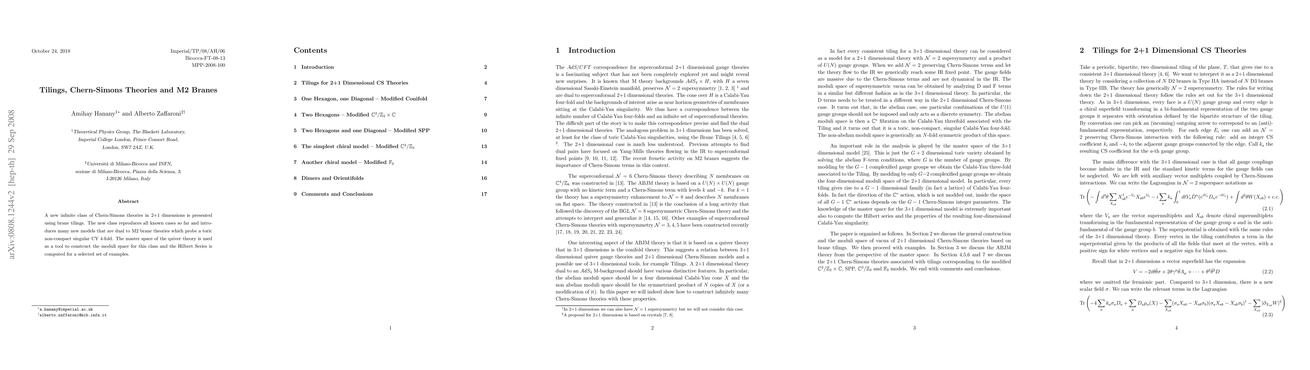 This paper introduces an infinite class of Chern-Simons theories derived from brane tilings, encompassing all known models and proposing new dual M2 brane theories on non-compact Calabi-Yau 4-folds. It utilizes the master space of quiver theories to construct the moduli space and computes the Hilbert Series for selected examples.