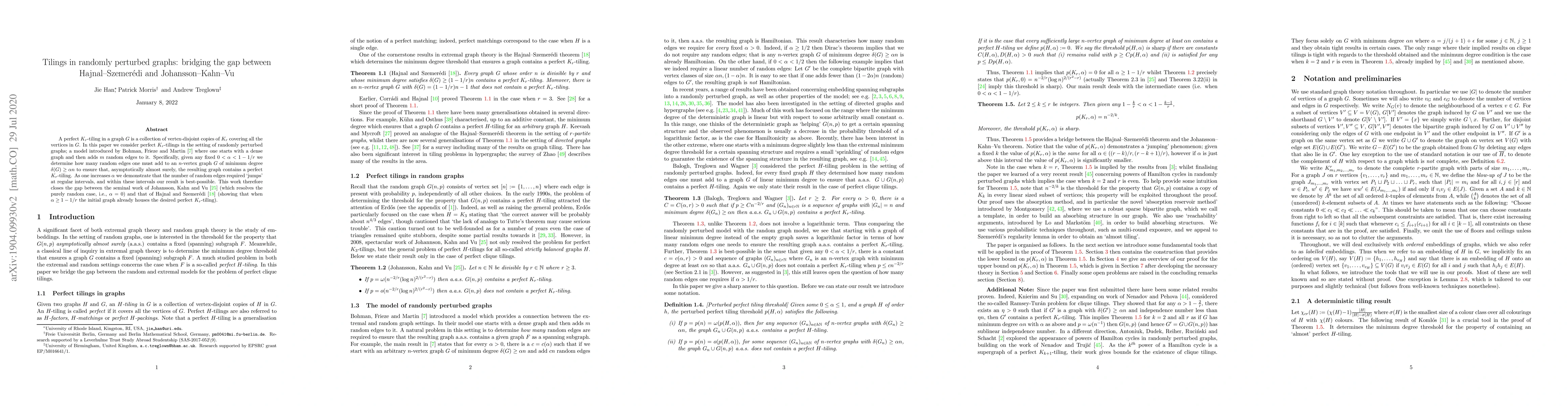 This paper investigates the number of random edges needed to ensure a perfect $K_r$-tiling in randomly perturbed dense graphs, bridging the results of Hajnal-Szemerédi and Johansson-Kahn-Vu. It shows that the required number of edges "jumps" at specific intervals as the minimum degree increases, providing a complete picture of the tiling requirement.