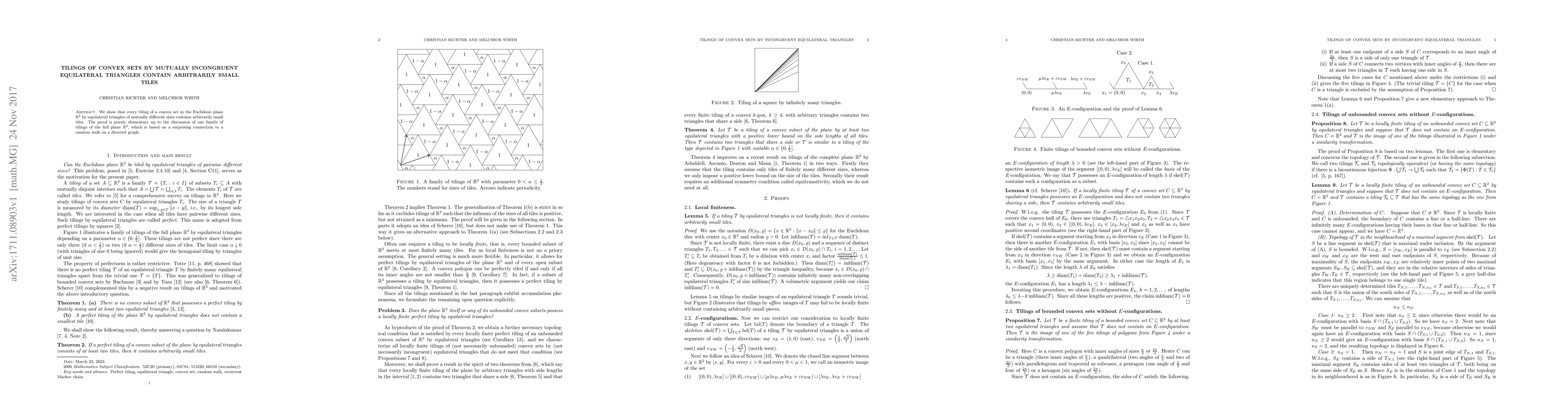 We show that every tiling of a convex set in the Euclidean plane $\mathbb{R}^2$ by equilateral triangles of mutually different sizes contains arbitrarily small tiles. The proof is purely elementary up to the discussion of one family of tilings of the full plane $\mathbb{R}^2$, which is based on a surprising connection to a random walk on a directed graph.