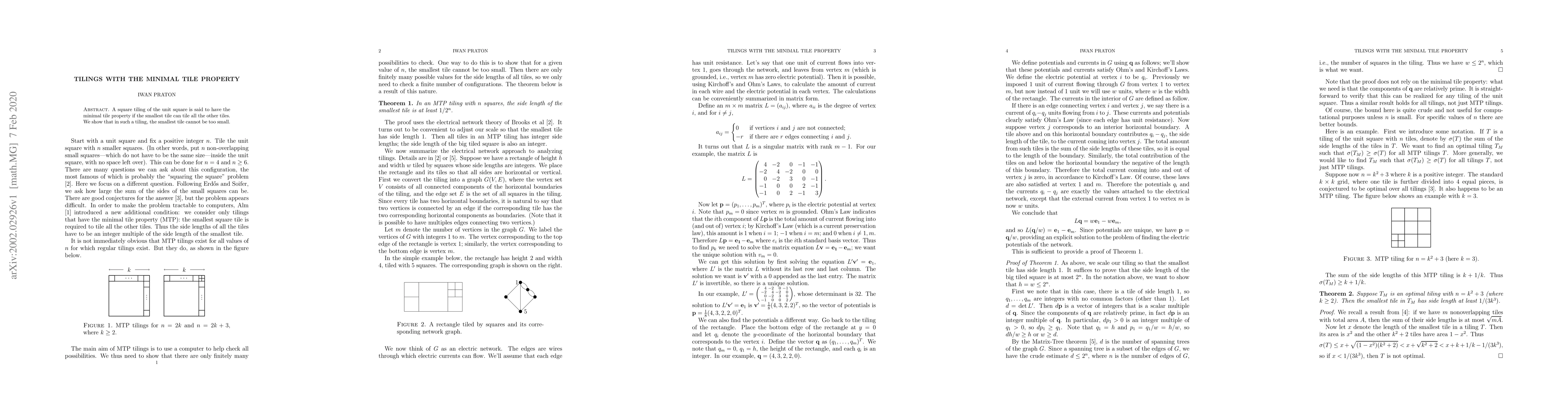 A square tiling of the unit square is said to have the minimal tile property if the smallest tile can tile all the other tiles. We show that in such a tiling, the smallest tile cannot be too small.