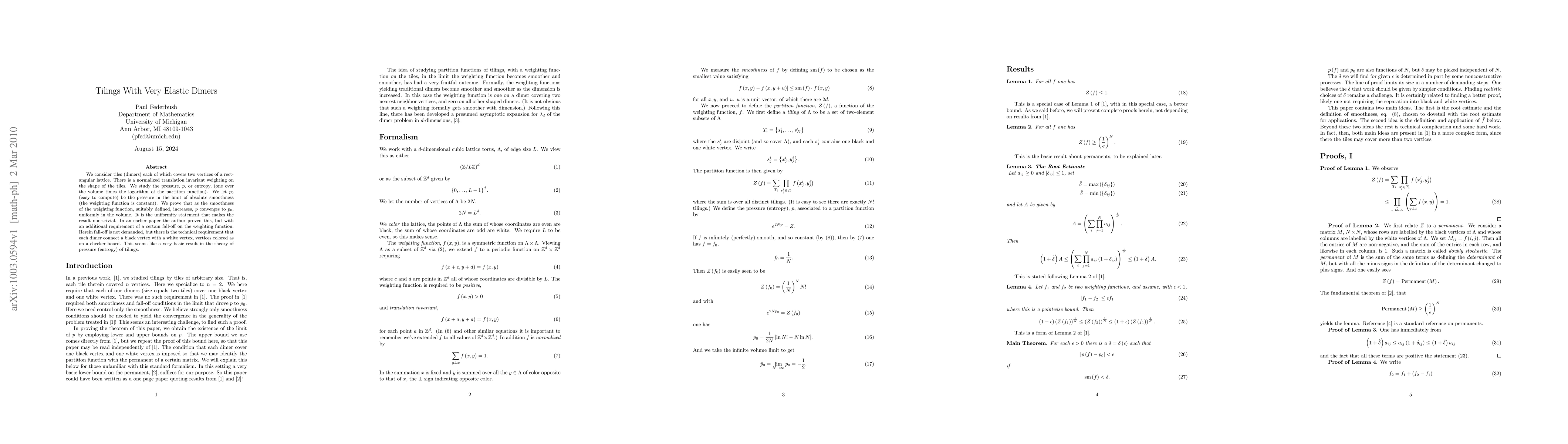 This paper studies the pressure (entropy) of tilings formed by elastic dimers on a rectangular lattice, where each dimer connects a black and a white vertex. The authors prove that as the smoothness of the weighting function increases, the pressure converges uniformly to a simpler, constant value, without requiring a specific fall-off in the weighting function, unlike previous results.