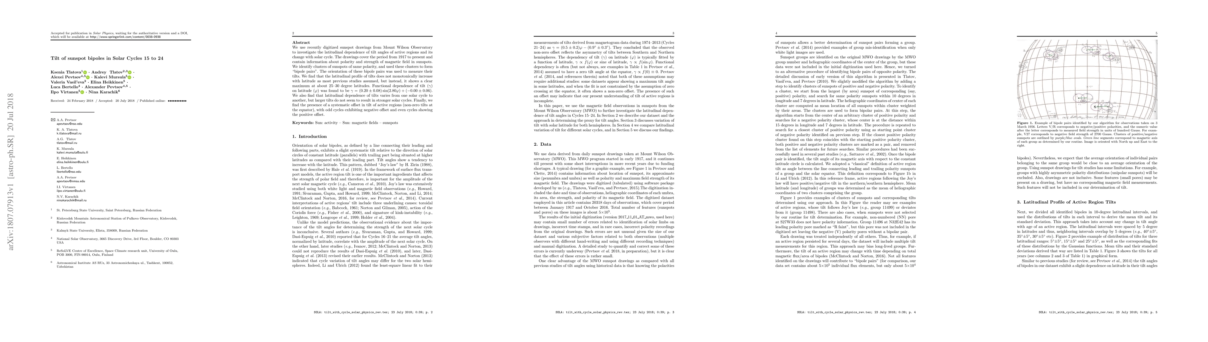 This study analyzes digitized sunspot drawings to investigate the latitudinal tilt of sunspot bipoles across Solar Cycles 15 to 24, revealing a non-monotonic tilt profile with a peak at 25-30 degrees latitude, and a systematic offset in tilts that varies between odd and even cycles. The functional dependence of tilt on latitude is given by $\gamma = (0.20\pm 0.08) \sin (2.80 \varphi) + (-0.00\pm 0.06)$.