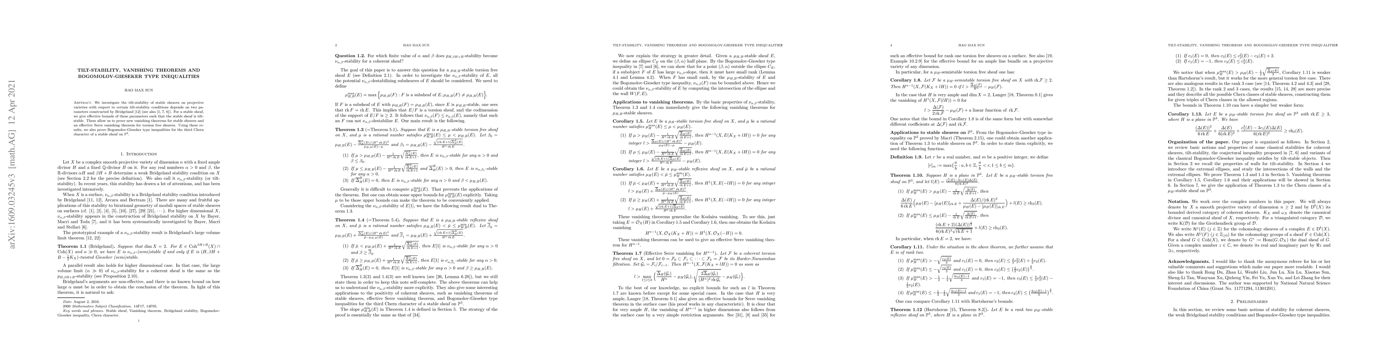 This paper explores tilt-stability of stable sheaves on projective varieties under Bridgeland's tilt-stability conditions, providing bounds that ensure tilt-stability. It also proves new vanishing theorems and Bogomolov-Gieseker type inequalities for the third Chern character of stable sheaves on $\mathbb{P}^3$.