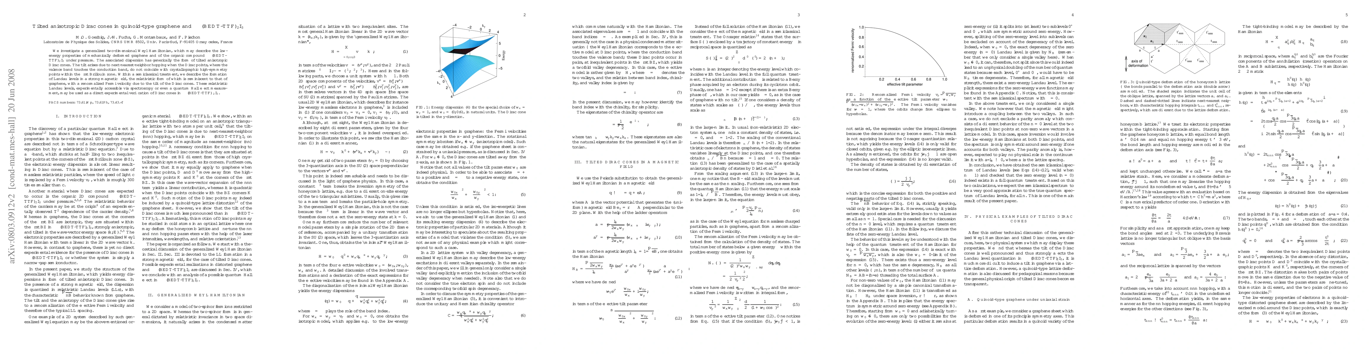 This paper explores a generalized Weyl Hamiltonian to describe the low-energy behavior of deformed graphene and the organic compound alpha-(BEDT-TTF)_2I_3 under pressure, revealing tilted anisotropic Dirac cones due to next-nearest-neighbor hopping. It proposes that these cones' tilt can be experimentally verified through relativistic Landau levels in strong magnetic fields.