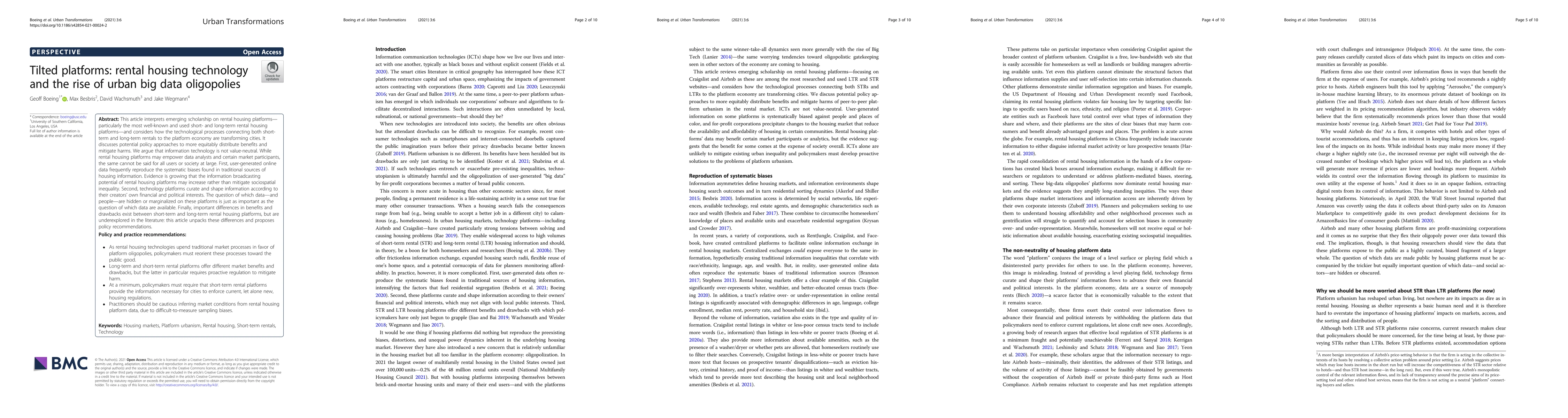 This article examines how rental housing platforms are reshaping urban landscapes and highlights the sociospatial inequalities perpetuated by these technologies, advocating for policy measures to address these disparities. It also explores the differences between short-term and long-term rental platforms and suggests targeted policy recommendations.