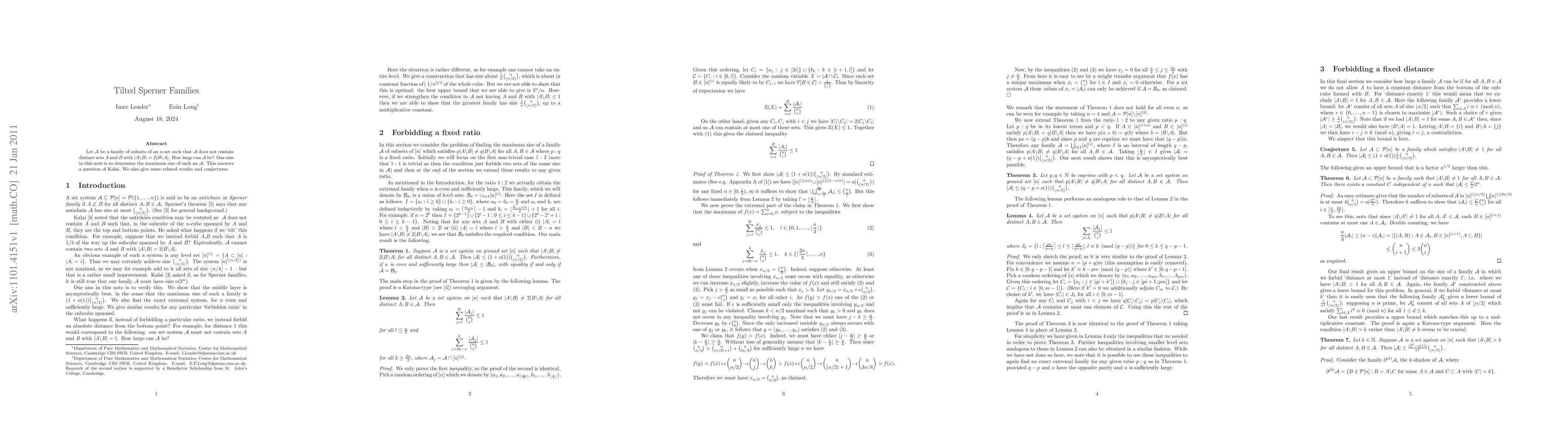 This paper investigates the maximum size of a Sperner family \cal A of subsets of an n-set where no two sets A and B in \cal A satisfy |A\B| = 2|B\A|. The authors determine the optimal size of such families, answering a question posed by Kalai, and provide related results and conjectures.