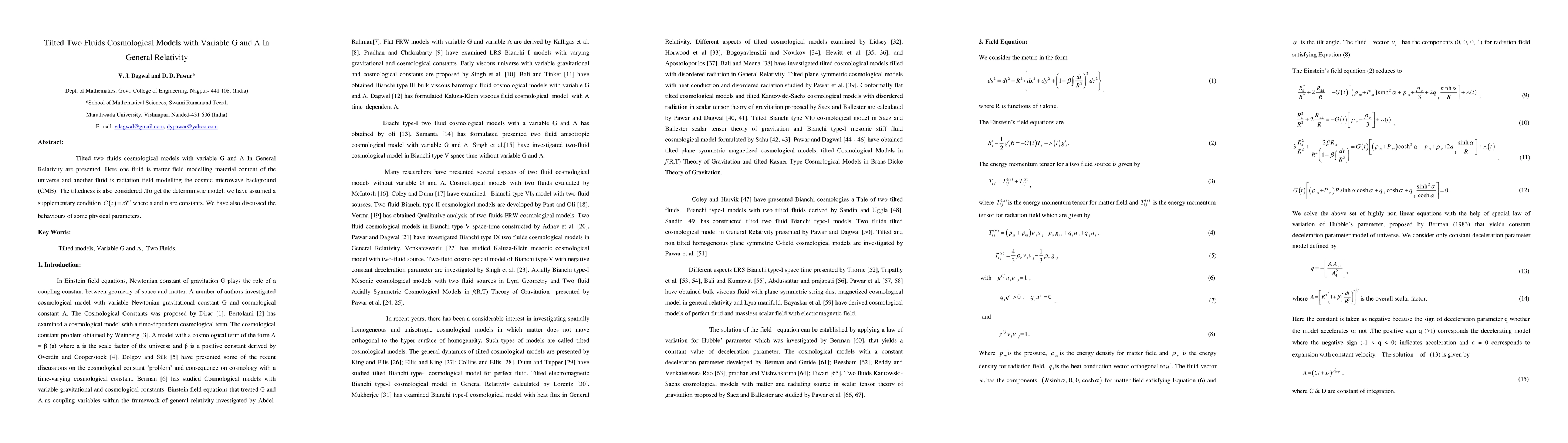 This paper explores tilted two-fluid cosmological models in General Relativity, where one fluid represents matter and the other radiation, with variable gravitational constant G and cosmological constant Λ. A supplementary condition is introduced to derive a deterministic model, and the behaviors of relevant physical parameters are analyzed.