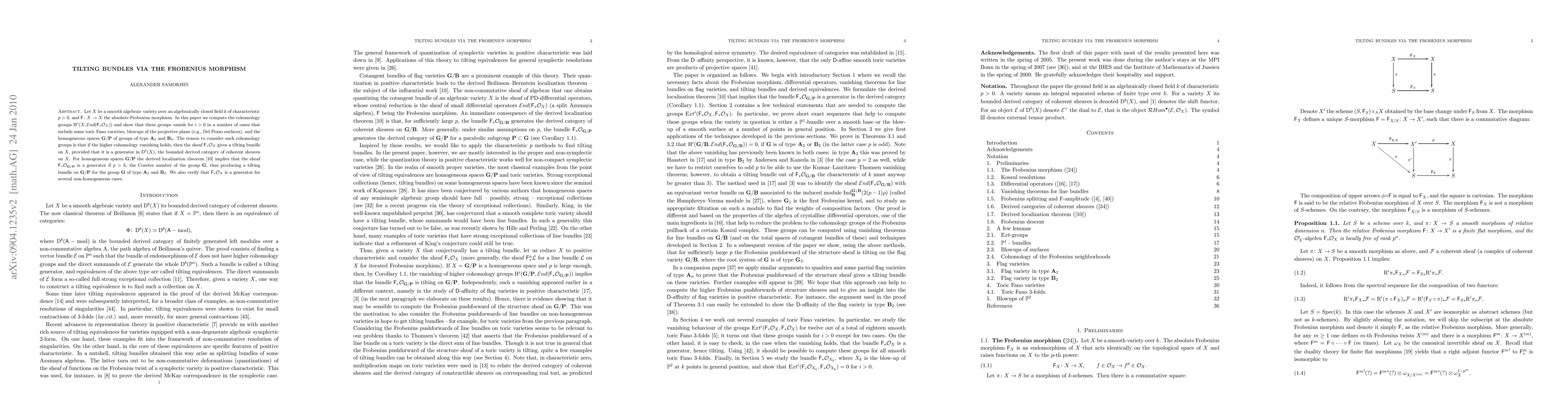 The research employs characteristic $p$ methods, reducing varieties modulo a prime and analyzing direct images under the Frobenius morphism to construct tilting bundles for toric Fano varieties, Del Pezzo surfaces, and flag varieties $G/B$ of types $A_2$ and $B_2$.