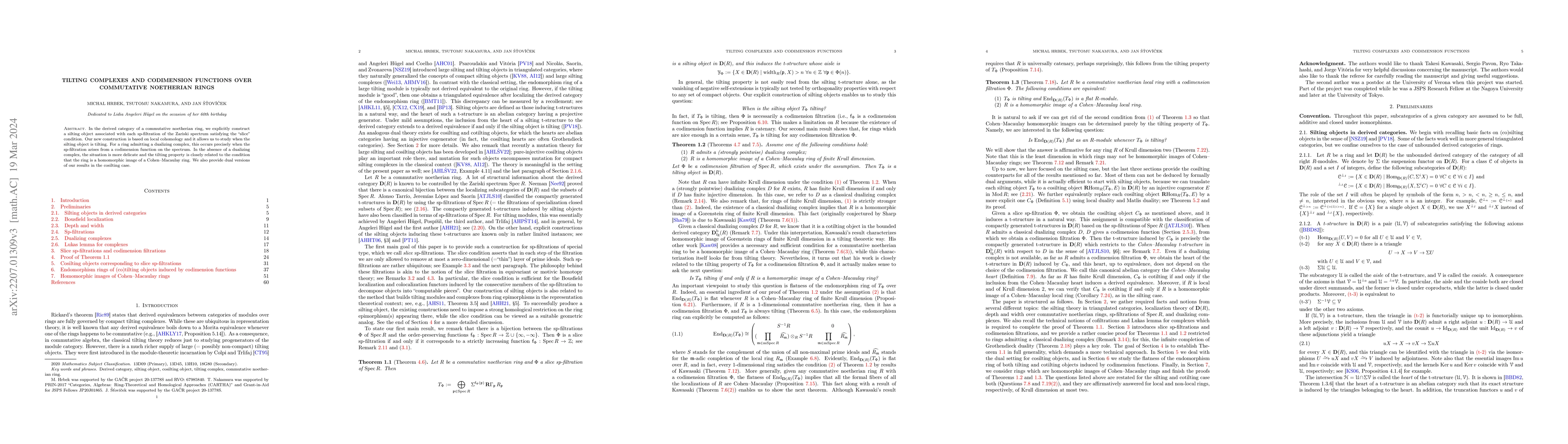 In the derived category of a commutative noetherian ring, we explicitly construct a silting object associated with each sp-filtration of the Zariski spectrum satisfying the "slice" condition. Our new construction is based on local cohomology and it allows us to study when the silting object is tilting. For a ring admitting a dualizing complex, this occurs precisely when the sp-filtration arises from a codimension function on the spectrum. In the absence of a dualizing complex, the situation is more delicate and the tilting property is closely related to the condition that the ring is a homomorphic image of a Cohen-Macaulay ring. We also provide dual versions of our results in the cosilting case.