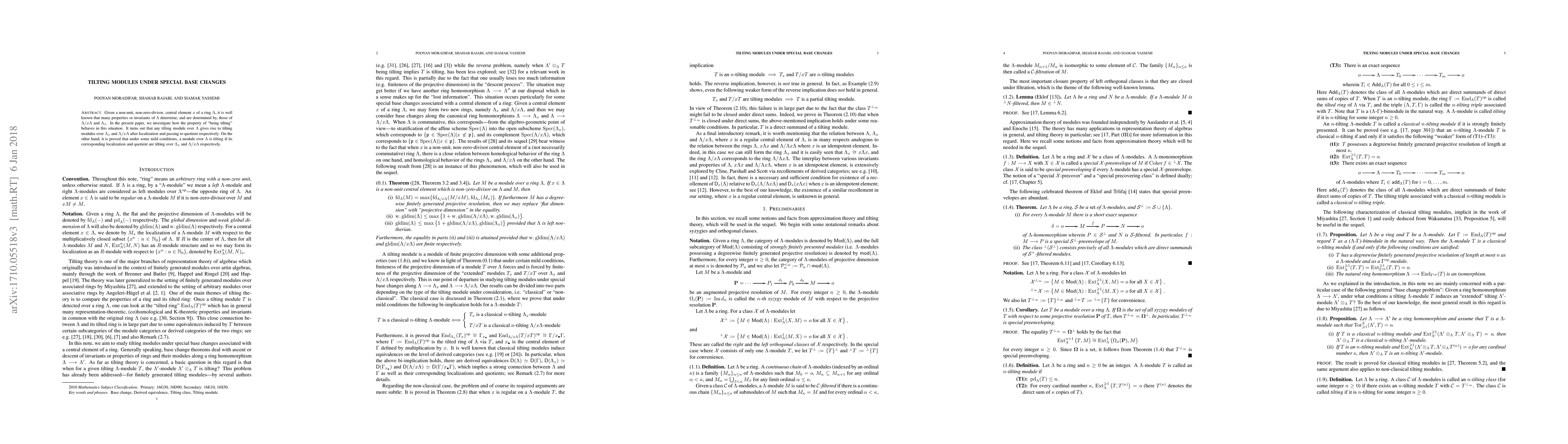 Given a non-unit, non-zero-divisor, central element $x$ of a ring $\Lambda$, it is well known that many properties or invariants of $\Lambda$ determine, and are determined by, those of $\Lambda / x \Lambda$ and $\Lambda_x$. In the present paper, we investigate how the property of "being tilting" behaves in this situation. It turns out that any tilting module over $\Lambda$ gives rise to tilting modules over $\Lambda_x$ and $\Lambda / x \Lambda$ after localization and passing to quotient respectively. On the other hand, it is proved that under some mild conditions, a module over $\Lambda$ is tilting if its corresponding localization and quotient are tilting over $\Lambda_x$ and $\Lambda / x \Lambda$ respectively.
