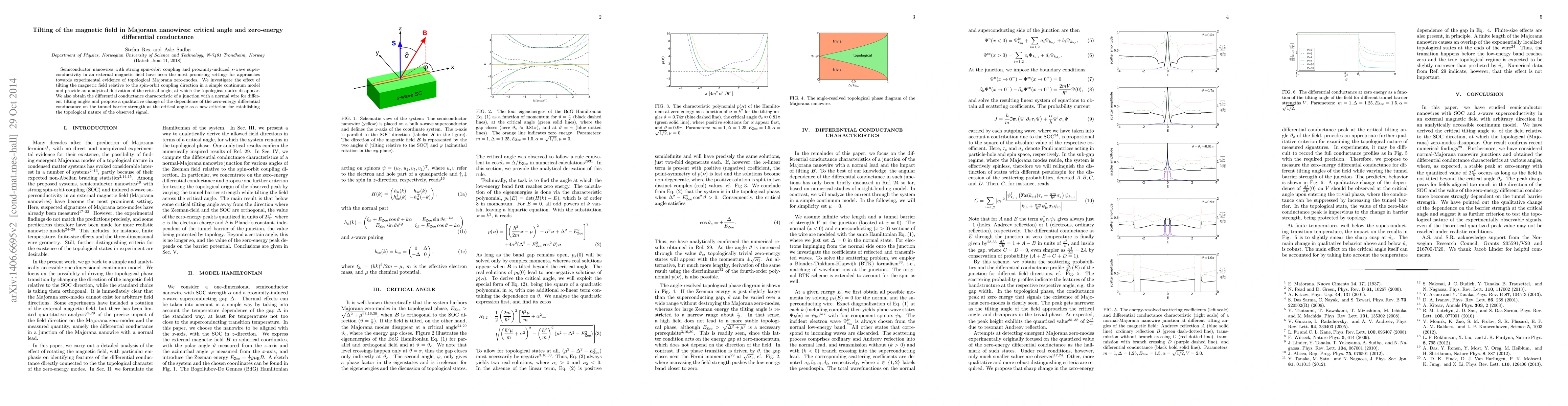 Semiconductor nanowires with strong spin-orbit coupling and proximity-induced s-wave superconductivity in an external magnetic field have been the most promising settings for approaches towards experimental evidence of topological Majorana zero-modes. We investigate the effect of tilting the magnetic field relative to the spin-orbit coupling direction in a simple continuum model and provide an analytical derivation of the critical angle, at which the topological states disappear. We also obtain the differential conductance characteristic of a junction with a normal wire for different tilting angles and propose the qualitative change of the dependence of the zero-energy differential conductance on the tunnel barrier strength at the critical angle as a new criterion for establishing the topological nature of the observed signal.