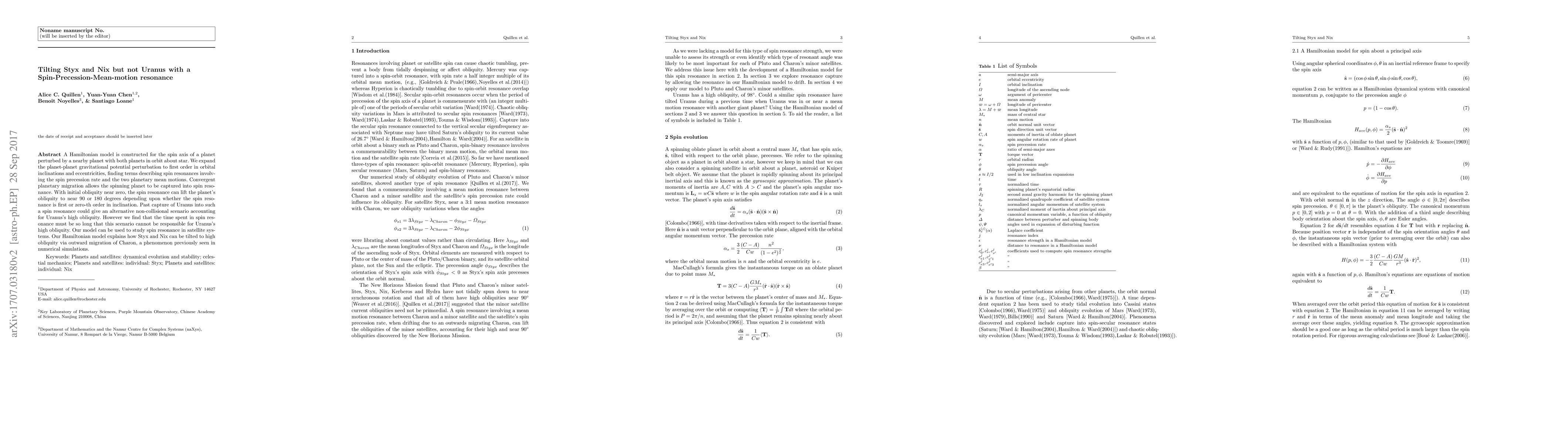 A research paper proposes a model explaining how Uranus's high obliquity could have arisen from spin resonance with a nearby planet, but finds it unlikely to be responsible for its current state.