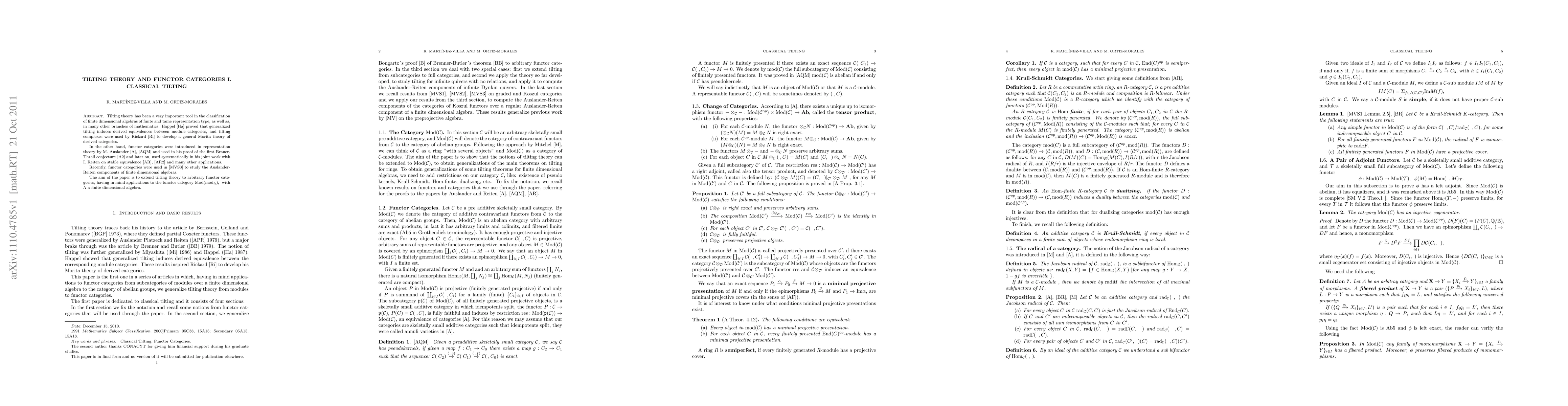 This paper extends tilting theory to functor categories, aiming to utilize this framework to study the Auslander-Reiten components of finite-dimensional algebras. The authors focus on the classical aspects of tilting and its implications for derived equivalences and Morita theory within these categories.