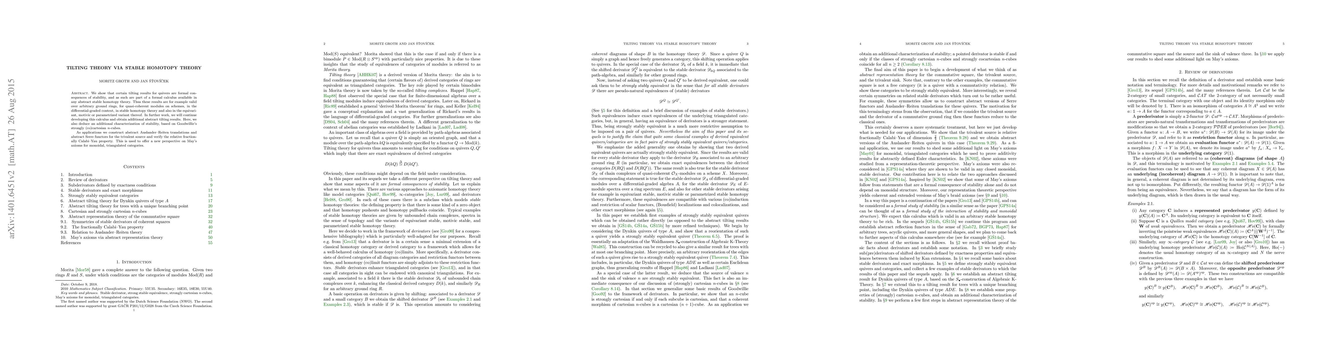 We show that certain tilting results for quivers are formal consequences of stability, and as such are part of a formal calculus available in any abstract stable homotopy theory. Thus these results are for example valid over arbitrary ground rings, for quasi-coherent modules on schemes, in the differential-graded context, in stable homotopy theory and also in the equivariant, motivic or parametrized variant thereof. In further work, we will continue developing this calculus and obtain additional abstract tilting results. Here, we also deduce an additional characterization of stability, based on Goodwillie's strongly (co)cartesian n-cubes. As applications we construct abstract Auslander-Reiten translations and abstract Serre functors for the trivalent source and verify the relative fractionally Calabi-Yau property. This is used to offer a new perspective on May's axioms for monoidal, triangulated categories.