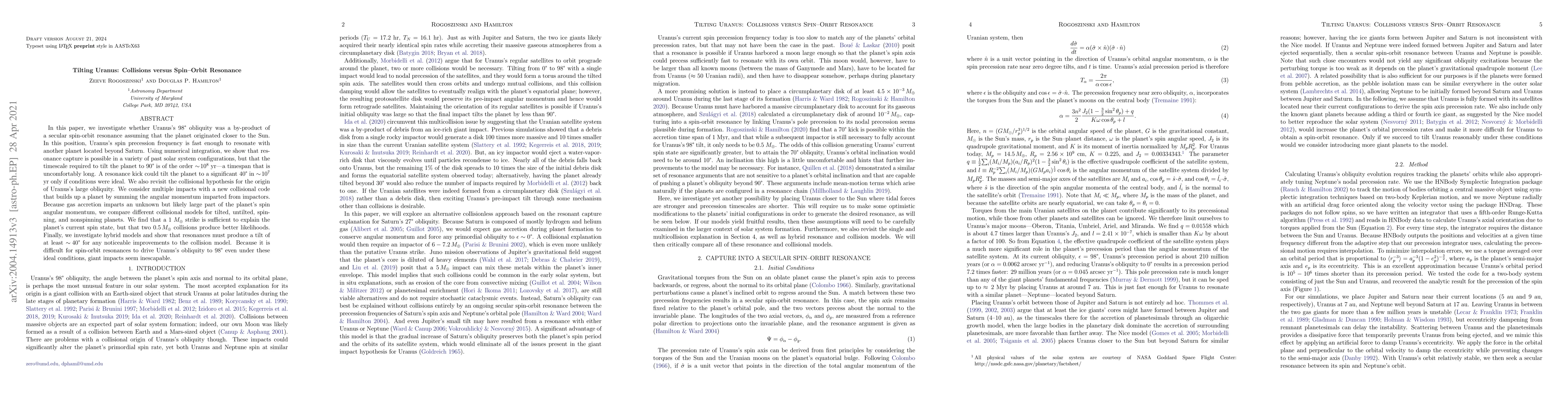 This paper explores the origins of Uranus's extreme obliquity, considering both spin-orbit resonance and giant impacts. It finds that while spin-orbit resonance could potentially tilt Uranus, the timescales are too long, and hybrid models require significant resonance contributions. The study concludes that giant impacts, particularly two medium-sized collisions, are more likely to explain Uranus's current obliquity.