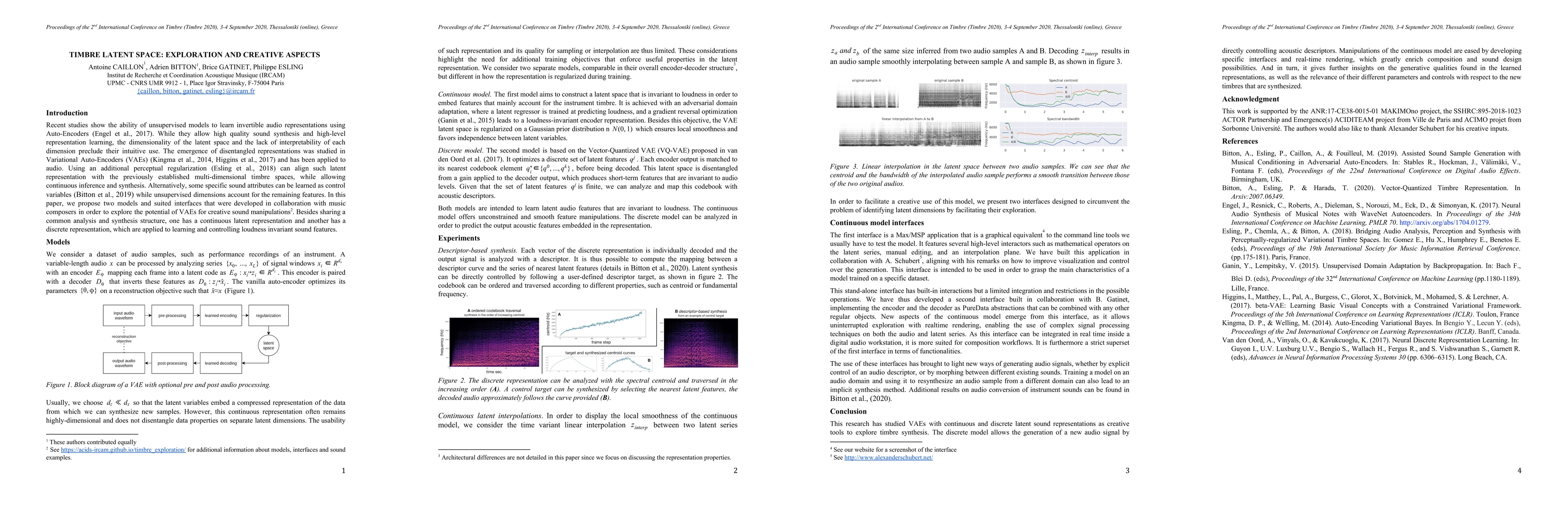 This paper explores the latent space of timbre in audio representations learned by unsupervised models, focusing on disentangled representations in Variational Auto-Encoders (VAEs). The study proposes new creative interfaces for timbre manipulation and synthesis, collaborating with composers to investigate latent sound synthesis and its creative potential.