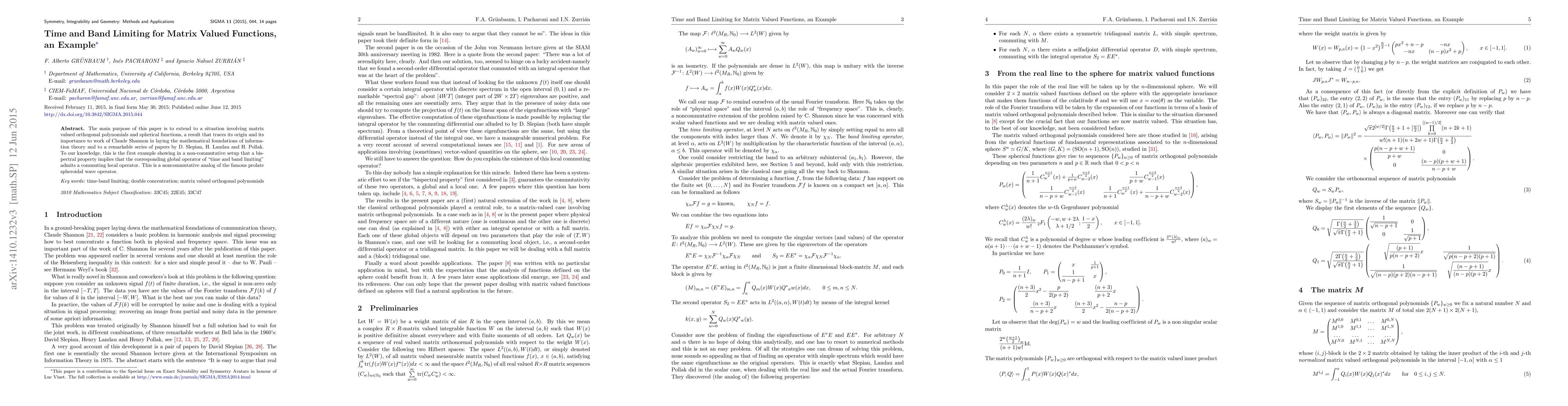 This paper explores a non-commutative setup where bispectral property implies the existence of a commuting local operator for time and band limiting in matrix-valued functions, similar to the prolate spheroidal wave operator.