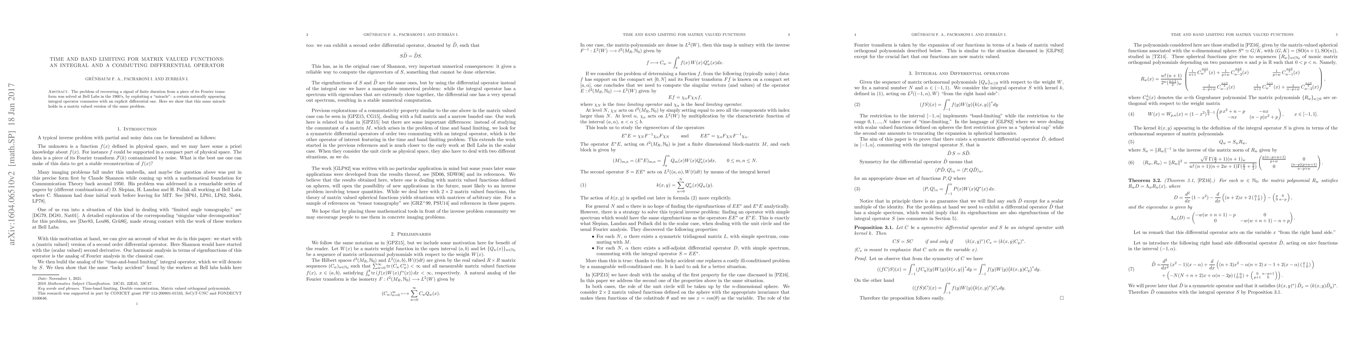 The problem of recovering a signal of finite duration from a piece of its Fourier transform was solved at Bell Labs in the $1960$'s, by exploiting a "miracle": a certain naturally appearing integral operator commutes with an explicit differential one. Here we show that this same miracle holds in a matrix valued version of the same problem.