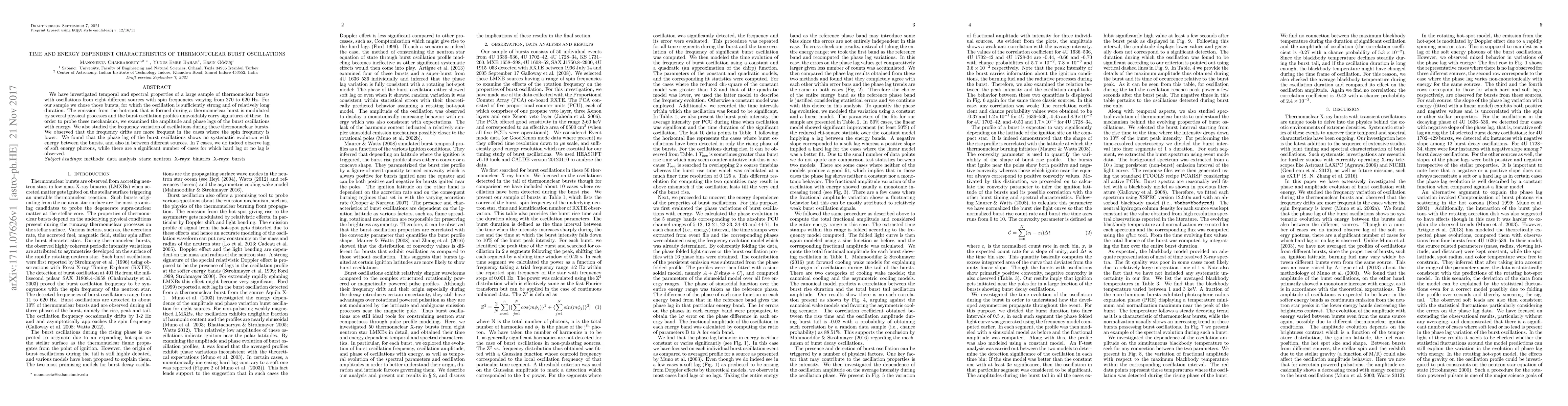 We have investigated temporal and spectral properties of a large sample of thermonuclear bursts with oscillations from eight different sources with spin frequencies varying from 270 to 620 Hz. For our sample we chose those bursts, for which the oscillation is sufficiently strong and of relatively long duration. The emission from the hot-spot that is formed during a thermonuclear burst is modulated by several physical processes and the burst oscillation profiles unavoidably carry signatures of these. In order to probe these mechanisms, we examined the amplitude and phase lags of the burst oscillations with energy. We also studied the frequency variation of oscillations during these thermonuclear bursts. We observed that the frequency drifts are more frequent in the cases where the spin frequency is lower. We found that the phase lag of the burst oscillations shows no systematic evolution with energy between the bursts, and also in between different sources. In 7 cases, we do indeed observe lag of soft energy photons, while there are a significant number of cases for which hard lag or no lag is observed.