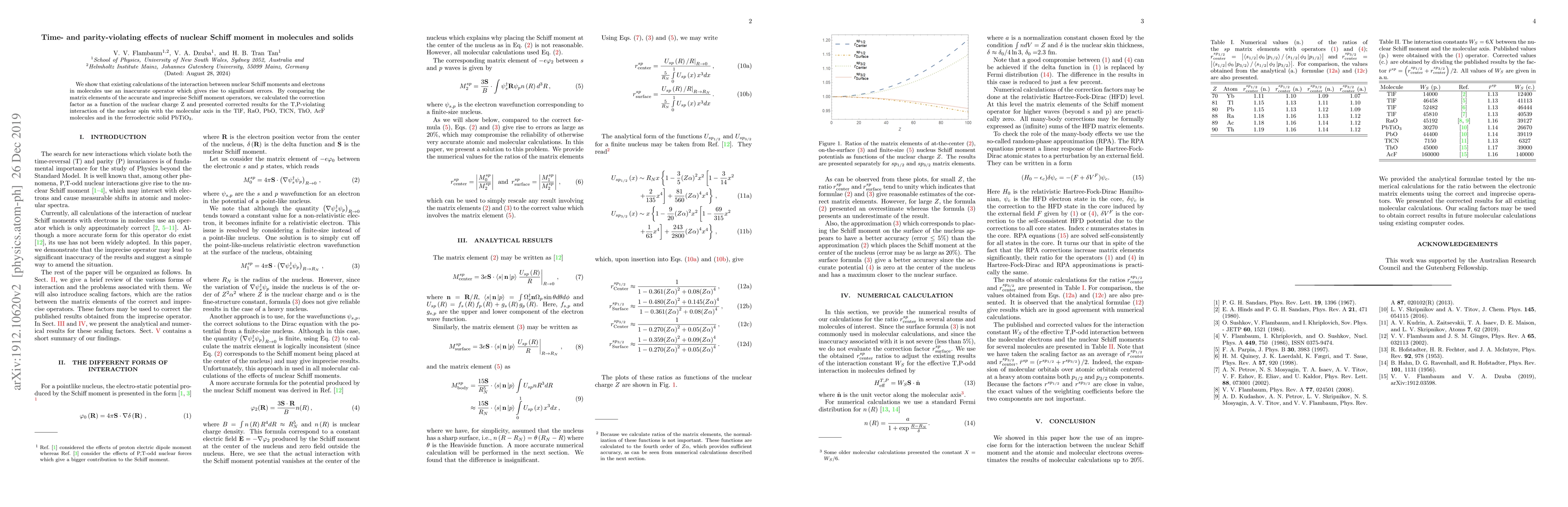 This paper corrects errors in existing calculations of the interaction between nuclear Schiff moments and electrons, providing a more accurate operator. It presents corrected results for the time- and parity-violating interaction of nuclear spin with the molecular axis in several molecules and the ferroelectric solid PbTiO$_3$.
