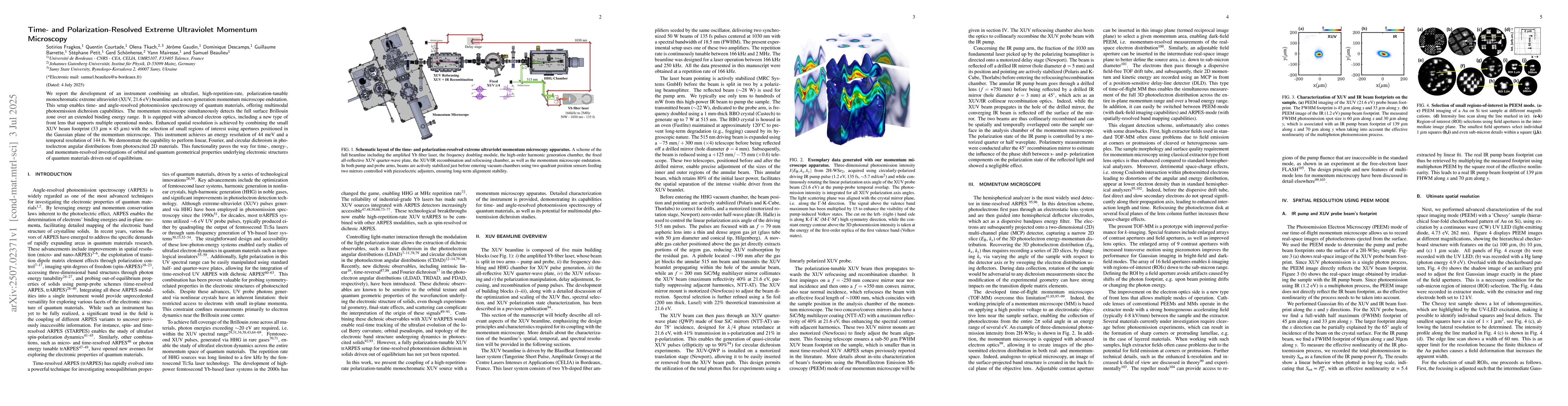 We report the development of an instrument combining an ultrafast, high-repetition-rate, polarization-tunable monochromatic extreme ultraviolet (XUV, 21.6 eV) beamline and a next-generation momentum microscope endstation. This setup enables time- and angle-resolved photoemission spectroscopy of quantum materials, offering multimodal photoemission dichroism capabilities. The momentum microscope simultaneously detects the full surface Brillouin zone over an extended binding energy range. It is equipped with advanced electron optics, including a new type of front lens that supports multiple operational modes. Enhanced spatial resolution is achieved by combining the small XUV beam footprint (33 $\mu$m by 45 $\mu$m) with the selection of small regions of interest using apertures positioned in the Gaussian plane of the momentum microscope. This instrument achieves an energy resolution of 44 meV and a temporal resolution of 144 fs. We demonstrate the capability to perform linear, Fourier, and circular dichroism in photoelectron angular distributions from photoexcited 2D materials. This functionality paves the way for time-, energy-, and momentum-resolved investigations of orbital and quantum geometrical properties underlying electronic structures of quantum materials driven out of equilibrium.