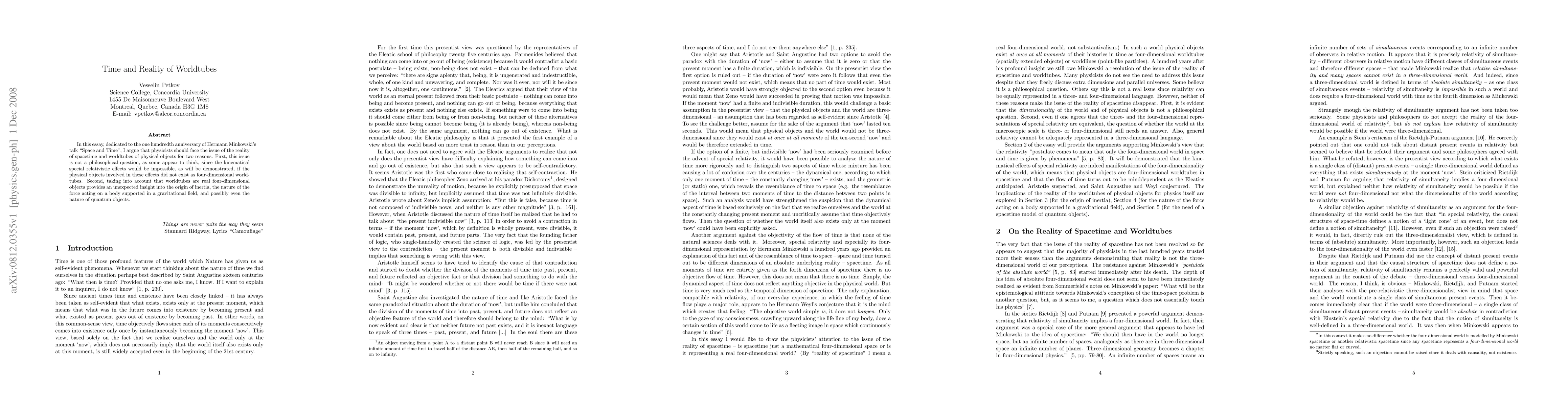 In this essay, dedicated to the one hundredth anniversary of Hermann Minkowski's talk "Space and Time", I argue that physicists should face the issue of the reality of spacetime and worldtubes of physical objects for two reasons. First, this issue is not a philosophical question, as some appear to think, since the kinematical special relativistic effects would be impossible, as will be demonstrated, if the physical objects involved in these effects did not exist as four-dimensional worldtubes. Second, taking into account that worldtubes are real four-dimensional objects provides an unexpected insight into the origin of inertia, the nature of the force acting on a body supported in a gravitational field, and possibly even the nature of quantum objects.