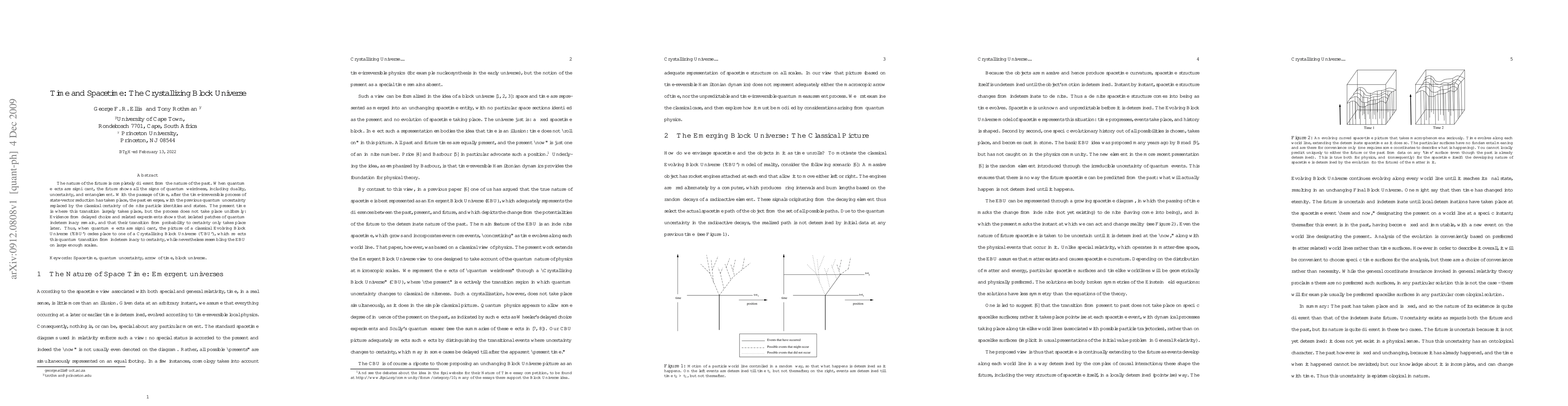 The nature of the future is completely different from the nature of the past. When quantum effects are significant, the future shows all the signs of quantum weirdness, including duality, uncertainty, and entanglement. With the passage of time, after the time-irreversible process of state-vector reduction has taken place, the past emerges, with the previous quantum uncertainty replaced by the classical certainty of definite particle identities and states. The present time is where this transition largely takes place, but the process does not take place uniformly: Evidence from delayed choice and related experiments shows that isolated patches of quantum indeterminacy remain, and that their transition from probability to certainty only takes place later. Thus, when quantum effects are significant, the picture of a classical Evolving Block Universe (`EBU') cedes place to one of a Crystallizing Block Universe (`CBU'), which reflects this quantum transition from indeterminacy to certainty, while nevertheless resembling the EBU on large enough scales.