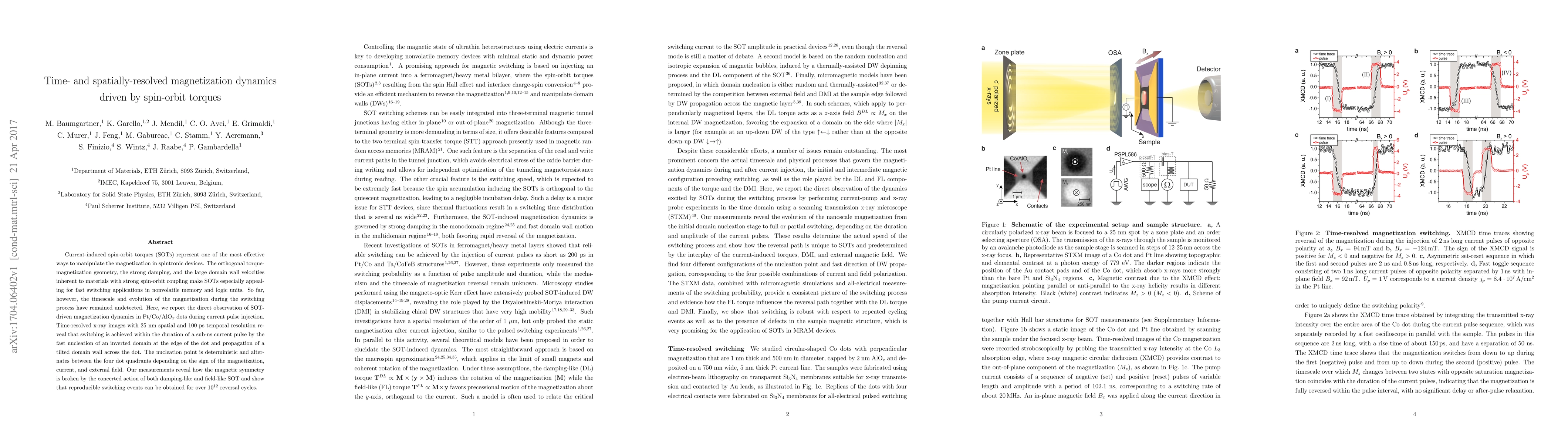 This paper reports the direct observation of magnetization dynamics driven by spin-orbit torques in Pt/Co/AlO$_x$ dots using time-resolved x-ray imaging. The study reveals that fast nucleation and domain wall propagation enable sub-ns switching, with reproducible events over $10^{12}$ cycles.