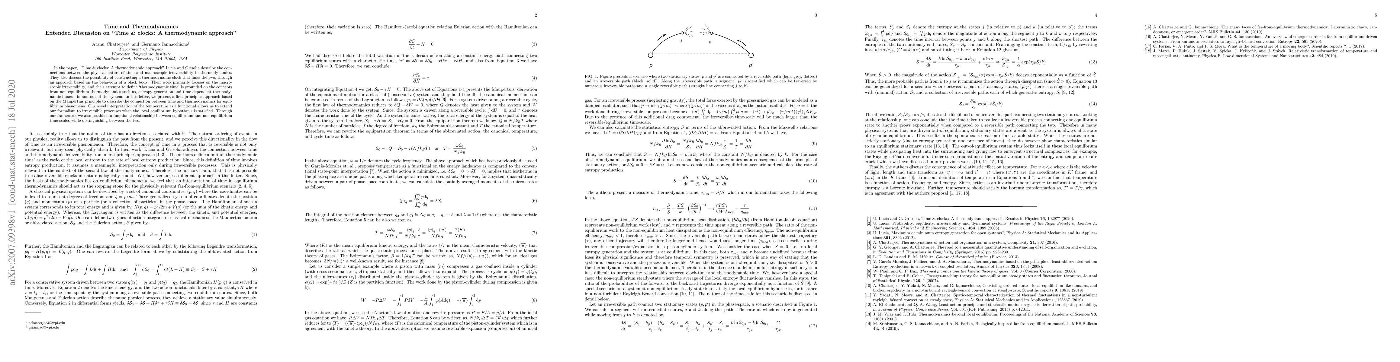 In the paper, "Time & clocks: A thermodynamic approach" Lucia and Grisolia describe the connections between the physical nature of time and macroscopic irreversibility in thermodynamics. They also discuss the possibility of constructing a thermodynamic clock that links the two, through an approach based on the behaviour of a black body. Their work primarily focuses on the macroscopic irreversibilty, and their attempt to define 'thermodynamic time' is grounded on the concepts from non-equilibrium thermodynamics such as, entropy generation and time-dependent thermodynamic fluxes - in and out of the system. In this letter, we present a first principles approach based on the Maupertuis principle to describe the connection between time and thermodynamics for equilibrium phenomena. Our novel interpretation of the temperature as a functional allows us to extend our formalism to irreversible processes when the local equilibrium hypothesis is satisfied. Through our framework we also establish a functional relationship between equilibrium and non-equilibrium time-scales while distinguishing between the two.